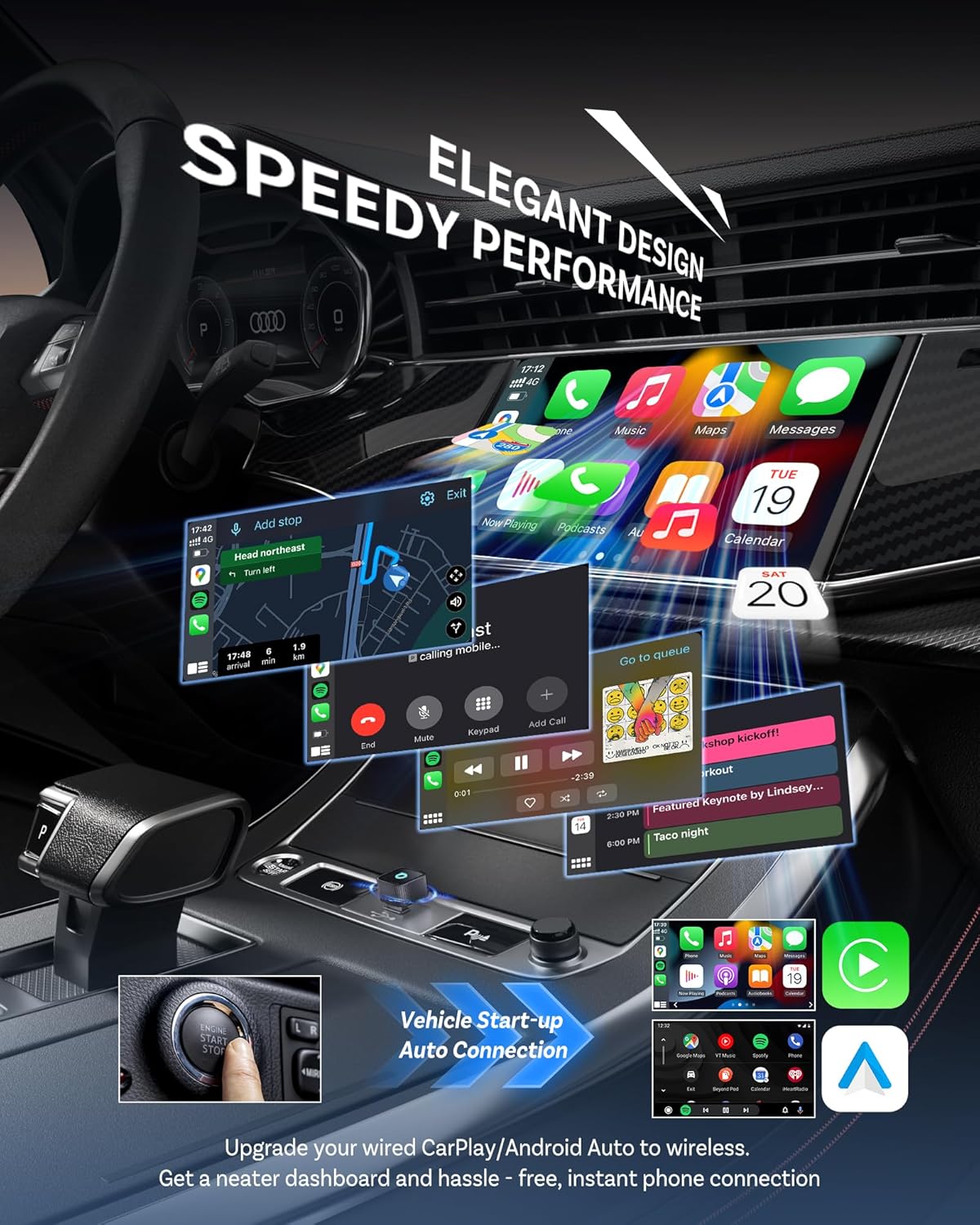 【Wireless Freedom for Every Drive】Transform your wired CarPlay/Android Auto into wireless with Ottocast Mini 2025. No more tangled cables—just seamless access to maps, calls, music, and messages. Perfect for parents juggling school runs, tech-savvy drivers on daily commutes, or car enthusiasts upgrading their ride. Works with 98% of wired CarPlay/Android Auto vehicles (❌Not for BMW/Tesla).