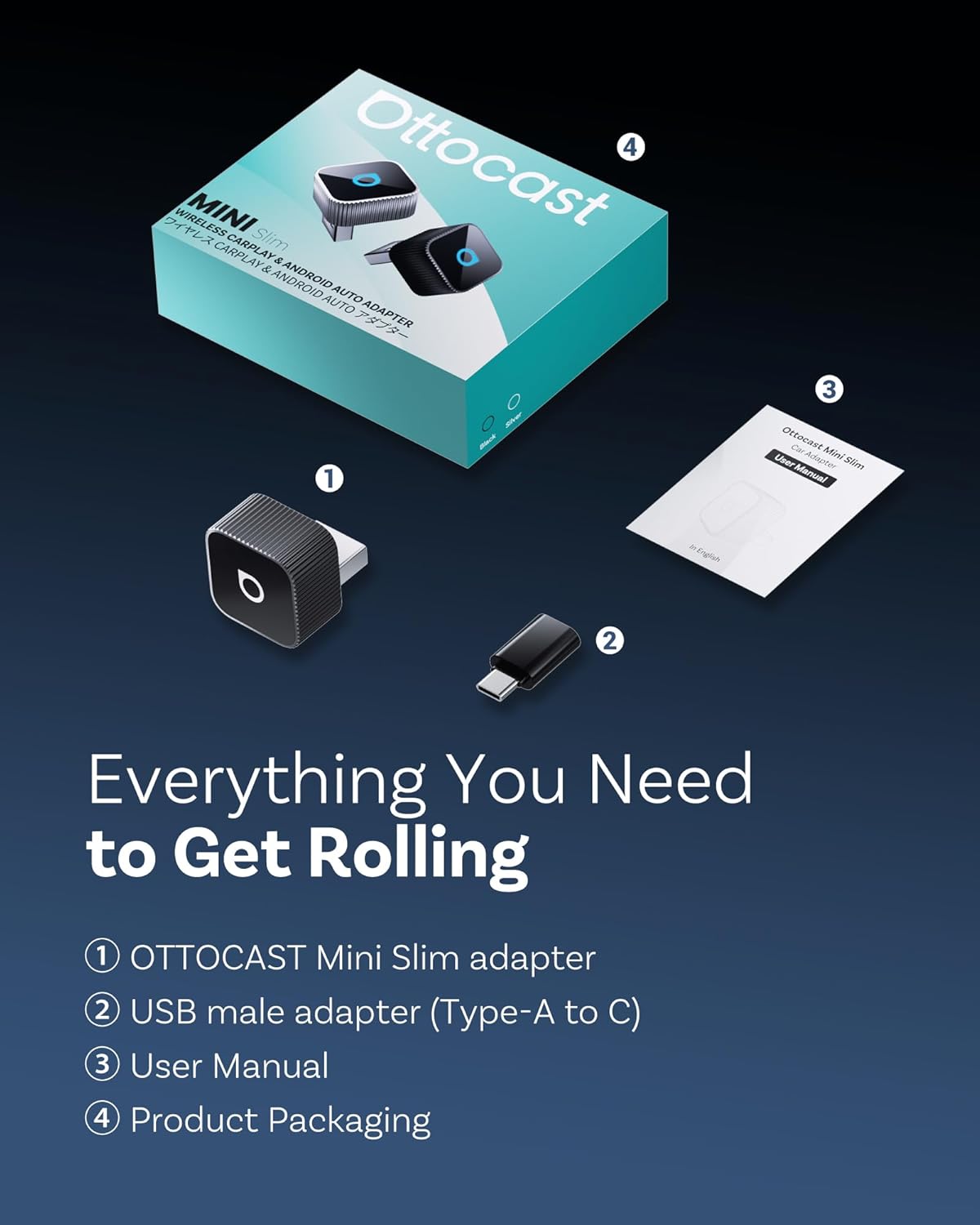 【Compact, Durable & Road-Ready】50% smaller than typical adapters, the Ottocast wireless CarPlay adapter 2025 blends into any car interior without clutter. Dual USB-A & Type-C ports included to ensure wide compatibility. Rigorously tested for 50,000+ plug cycles, it’s built tough for commuters, weekend explorers, and long-haul travelers who need gear they can rely on.