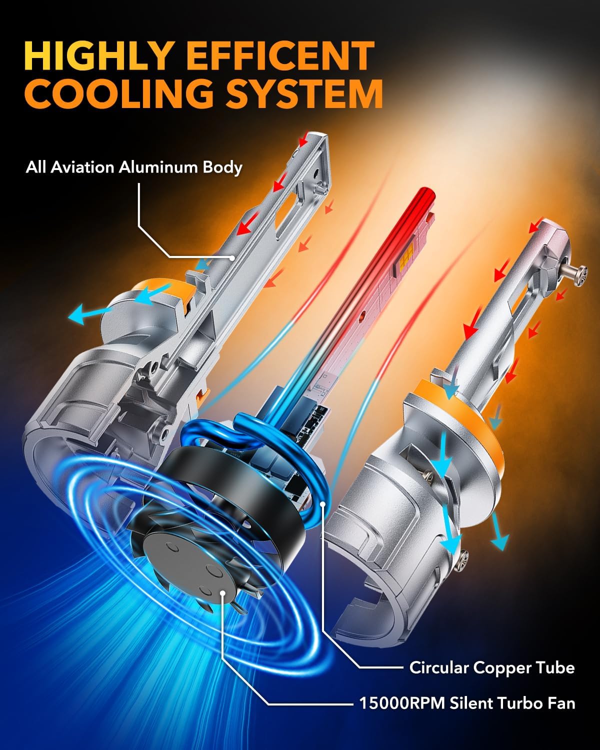 60,000-Hour Durability with Efficient Cooling: Full aluminum body and copper heat tube paired with a high-speed fan dissipate heat effectively. Ensures long-term reliability and consistent brightness.