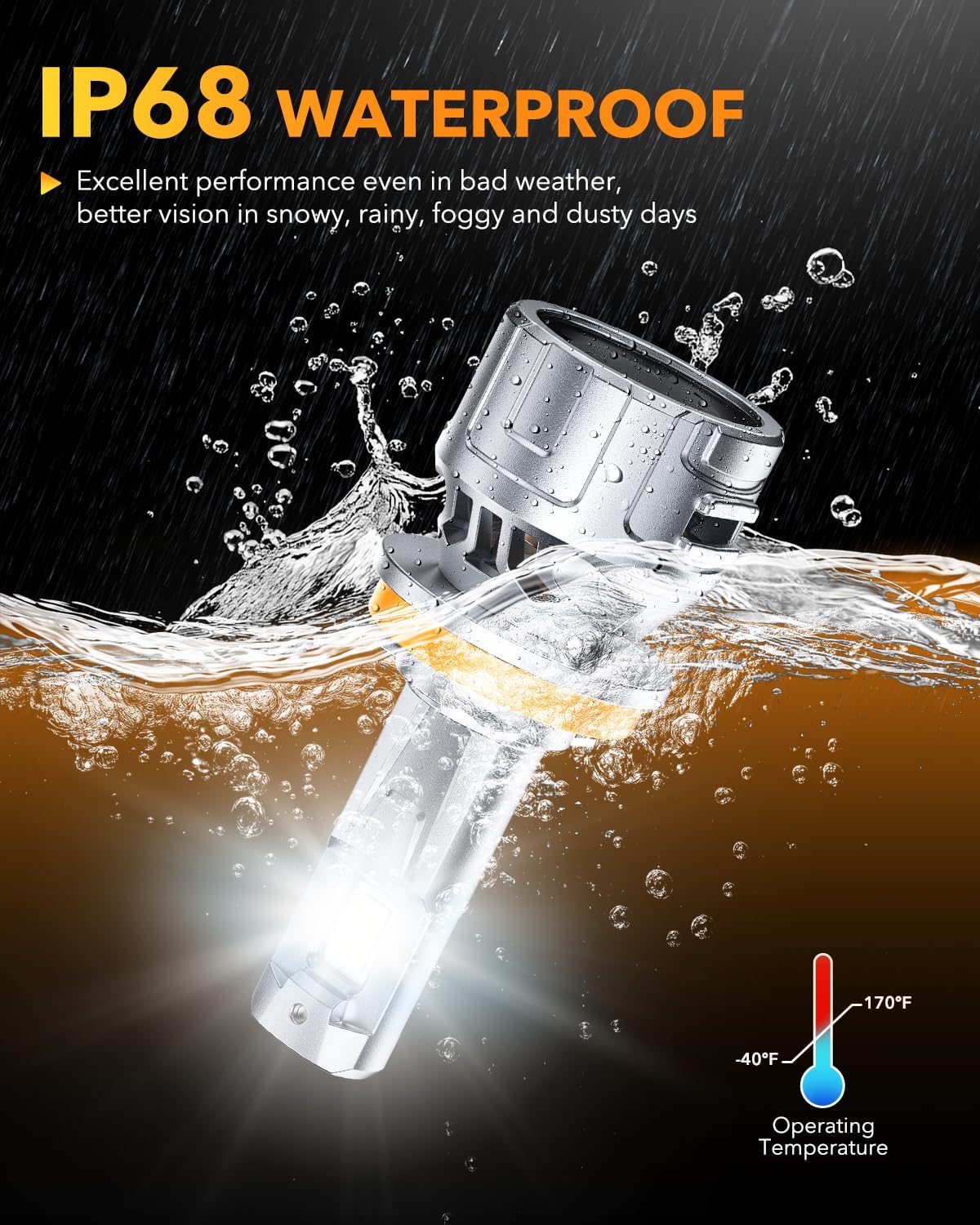 12X Brighter Output Upgraded LED chips produce 60000 lumens per pair—12 times brighter than halogens. The 6500K cool white light enhances contrast and clarity in all driving conditions.