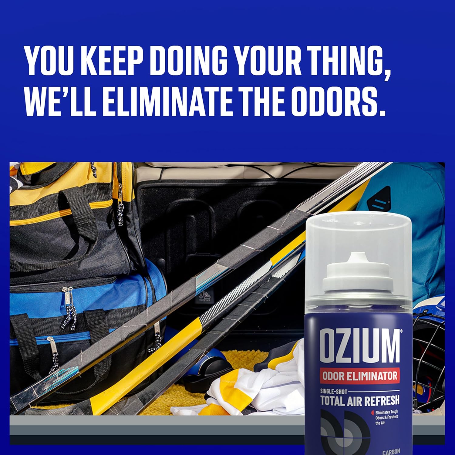 Ozium Air Sanitizer, 2 oz Car Fogger: Single-Shot Smoke Odor Eliminator & Car Air Freshener (Carbon Black, 4 Packs)