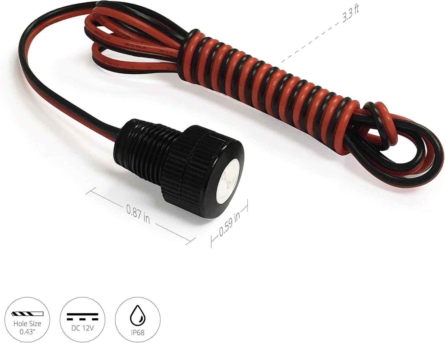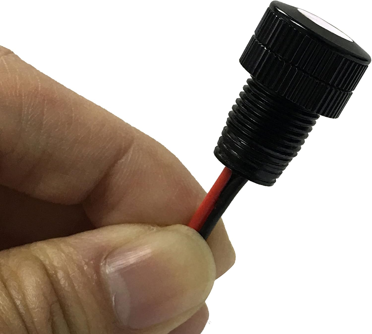 Simply drill a 11mm (about 7/16″) hole, route the 3 feet of 22AWG wire, slip the LED through, twist on the 2 locking nuts, then hook up the +/- (red/black ground). Simple two wire hookup means you’re installed in minutes. No fuse upgrades required!