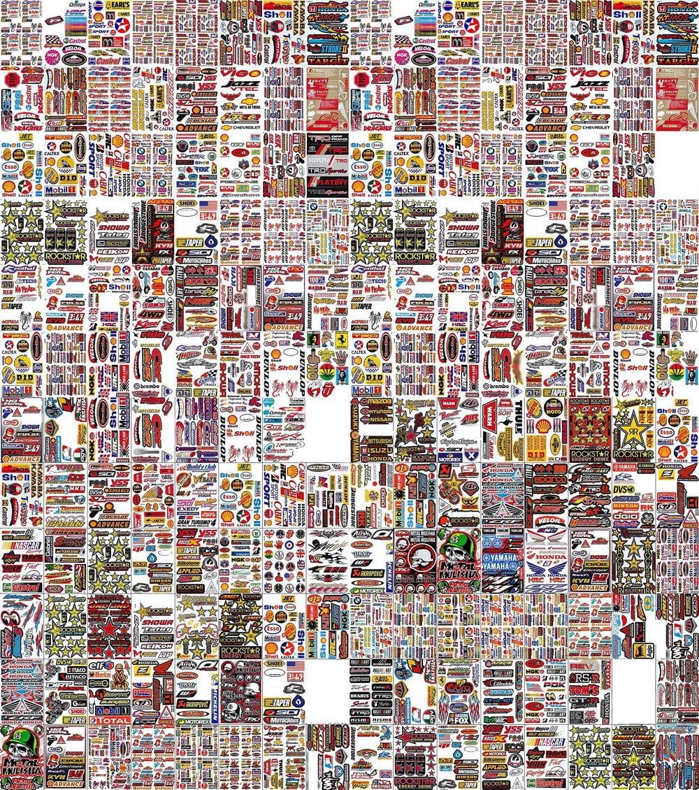 Pack of Random 8 Sheets Car Racing Stickers Motocross Dirt Bike Stickers Decal Sponsored Sticker Brand Logo Motorcycle Truck Bicycle Bike Logo Stickers Fire Flame Tattoo Sign Symbol