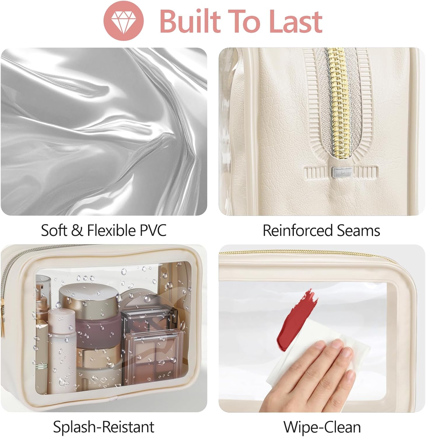 PACKISM Clear Makeup Bag – TSA Approved Toiletry Bag for Carry-on & Checked Luggage, Water Resistant Car Storage Organizer with Reinforced Seams