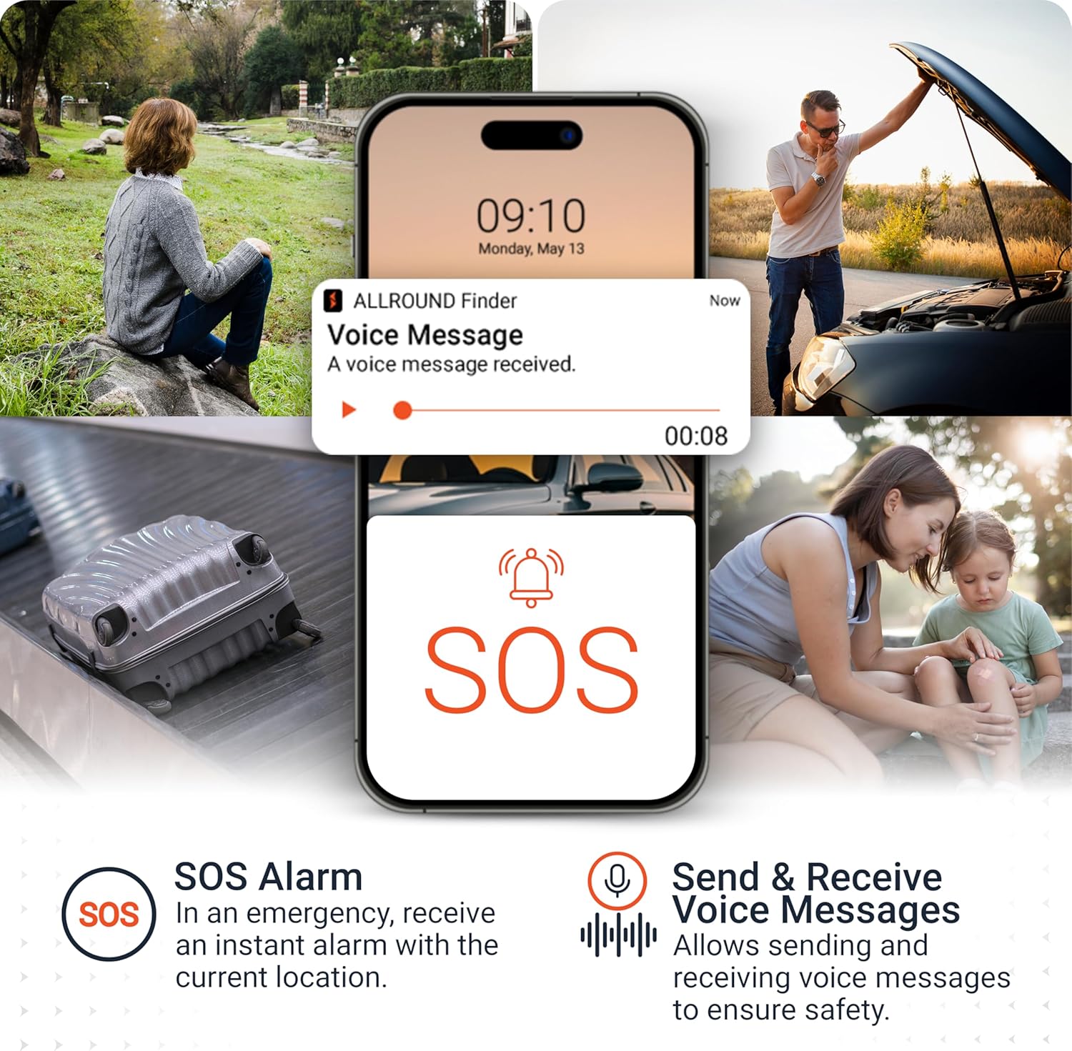 SOS button + Voice Message FunctionSmall and lightSplash proofFlexible use