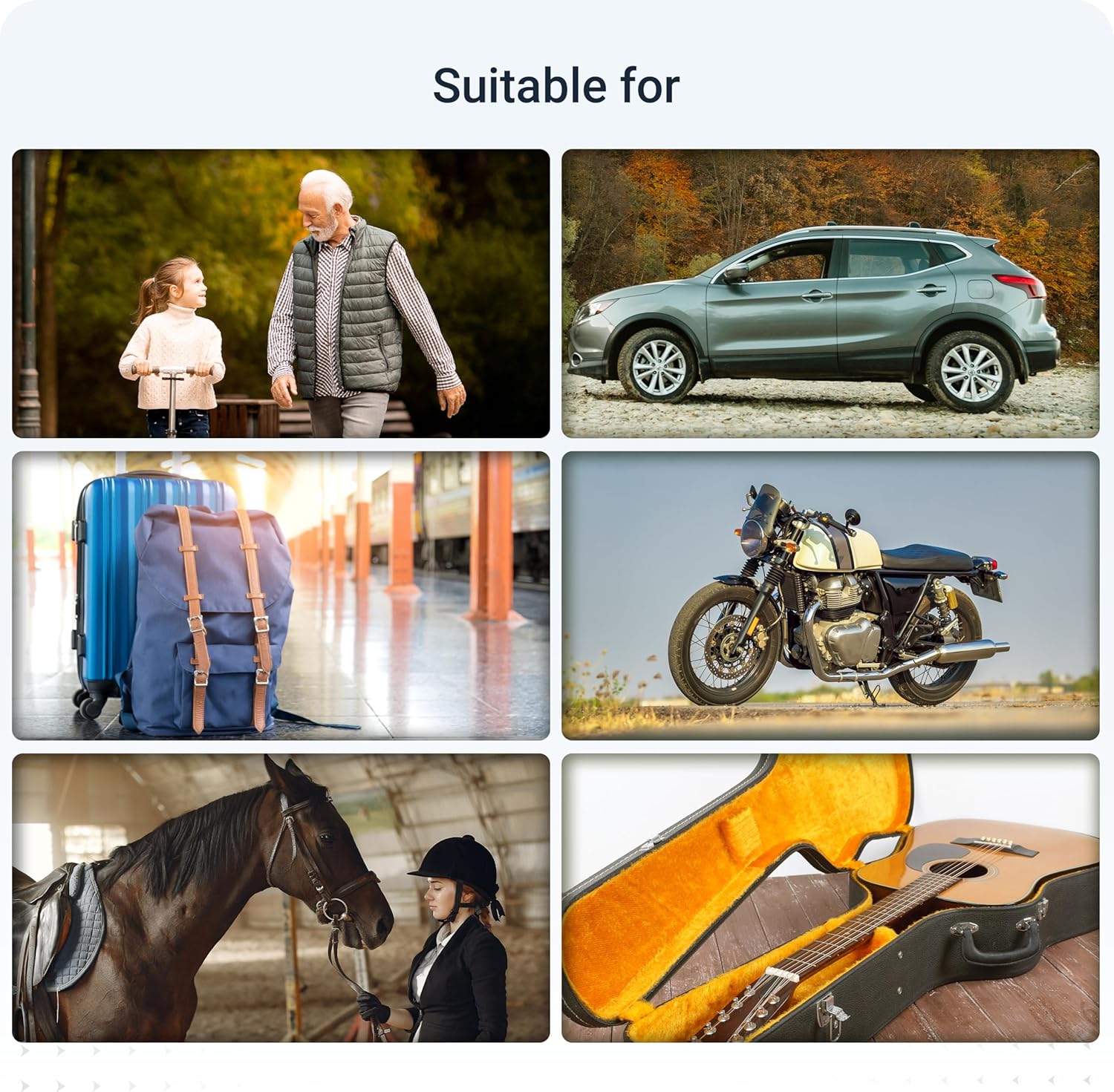 E-scooters, motorcycles, scooters, bicycles, bees/beekeepers, horses, children, elderly people, containers, wood, garden tools, instruments, suitcases E-scooters, motorcycles, scooters, bicycles, bees/beekeepers, horses, children, elderly people, containers, wood, garden tools, instruments, suitcases Children, Senior citizens, suitcases/bags, Instruments Cars, motorcycles, scooters, suitcases/bags, bicycles, e-scooters, e-bikes, garden tools, instruments, bees/beekeepers, horses, containers, wood, children, seniors