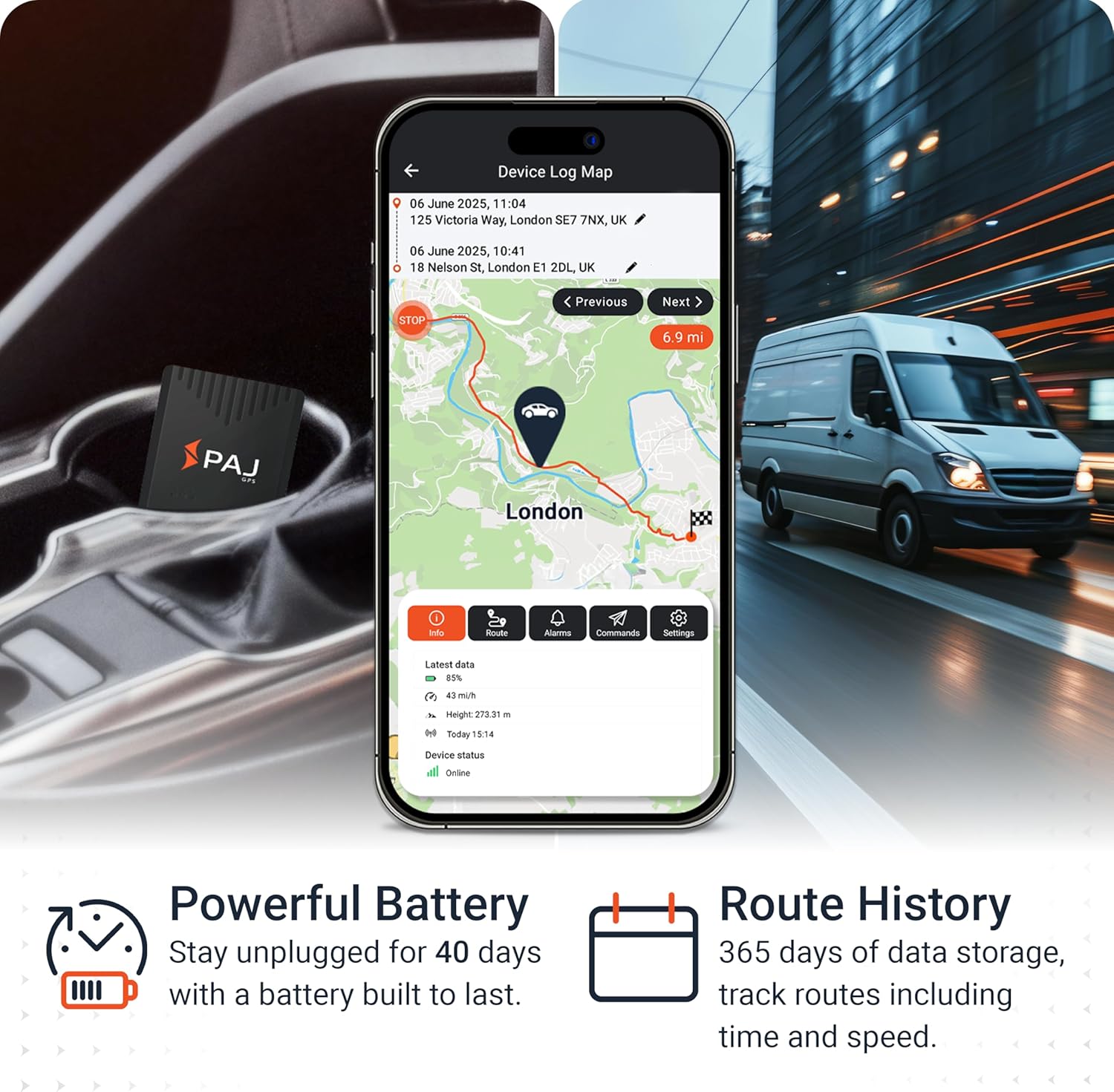 ACCURATE LIVE TRACKING: With 4G LTE connectivity and reliable global real-time tracking, you can easily monitor the precise location of your GPS device and vehicle at all times. Access detailed travel routes for up to 365 days through the Finder Portal