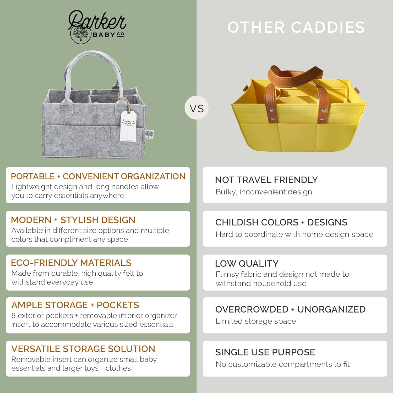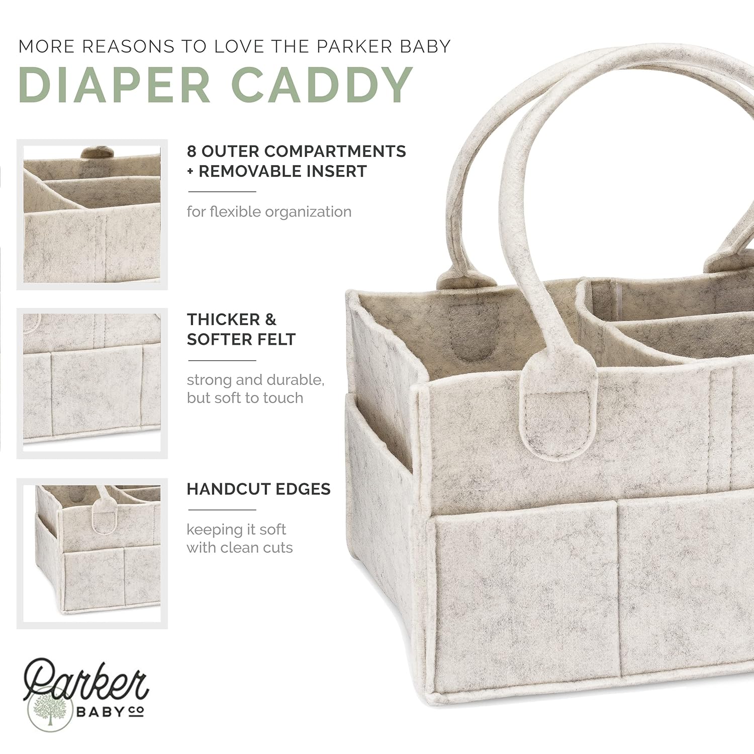 HIGH QUALITY DESIGN: Crafted from soft felt, our diaper caddy is built to last. Its soft and flexible design lets you easily fold the caddy when not in use and is sturdy enough to carry throughout the house for daily use. Each felt caddy is uniquely designed with heathered colored felt so coloration may vary. The high-quality materials ensure durability and easy maintenance. The hand-cut felt is sewn together creating soft edges that won’t damage your furniture. Elevate your diaper organization with the Parker Baby Diaper Caddy – the ultimate diaper bag essential and nursery organizer.