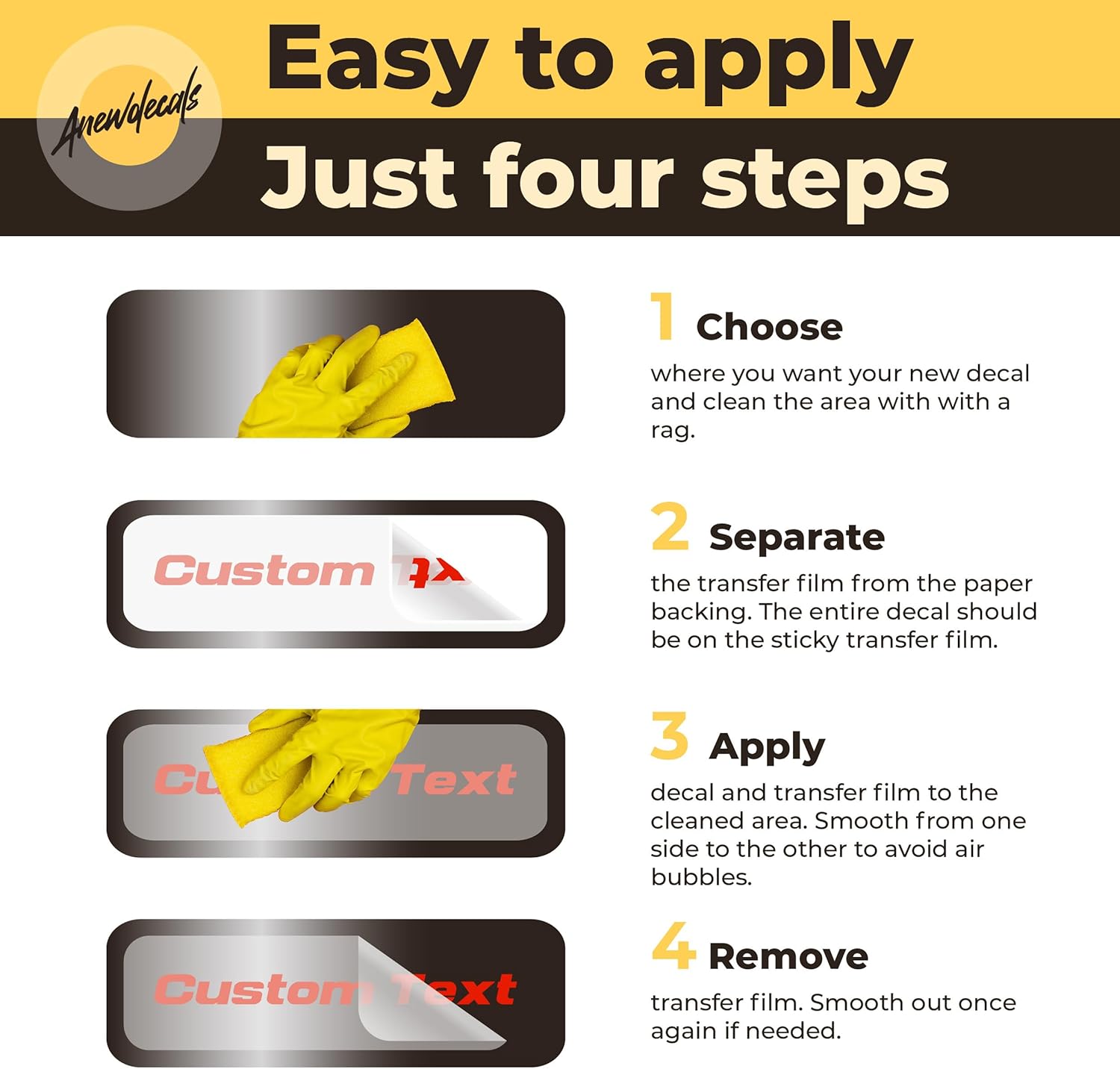 EASY BUBBLE-FREE APPLY: Simple peel-and-stick installation allows this custom vinyl sticker to apply smoothly without bubbles or wrinkles while maintaining strong adhesion.