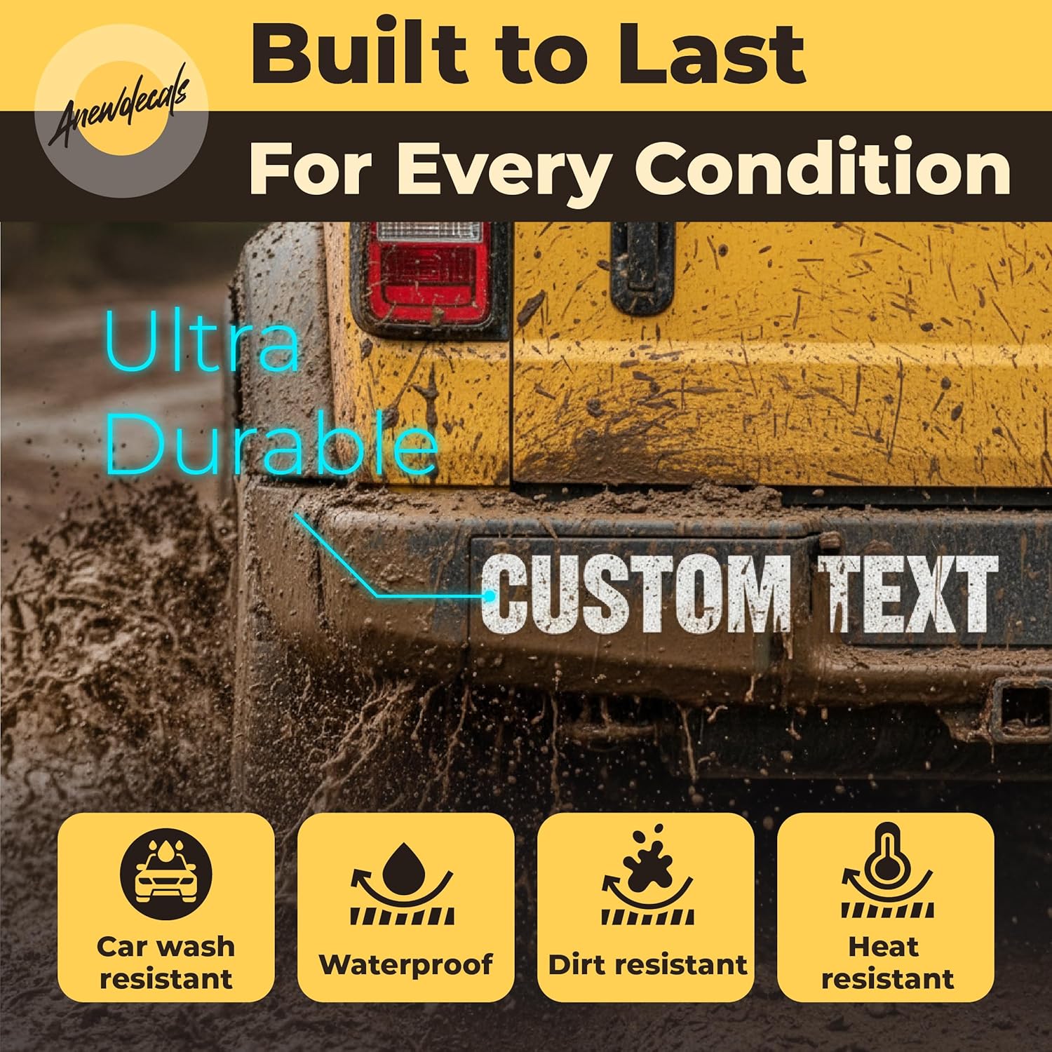 WEATHERPROOF MATERIAL: Made from durable vinyl that resists water, sunlight and fading, this custom car decal maintains strong adhesion and bright color through everyday use.
