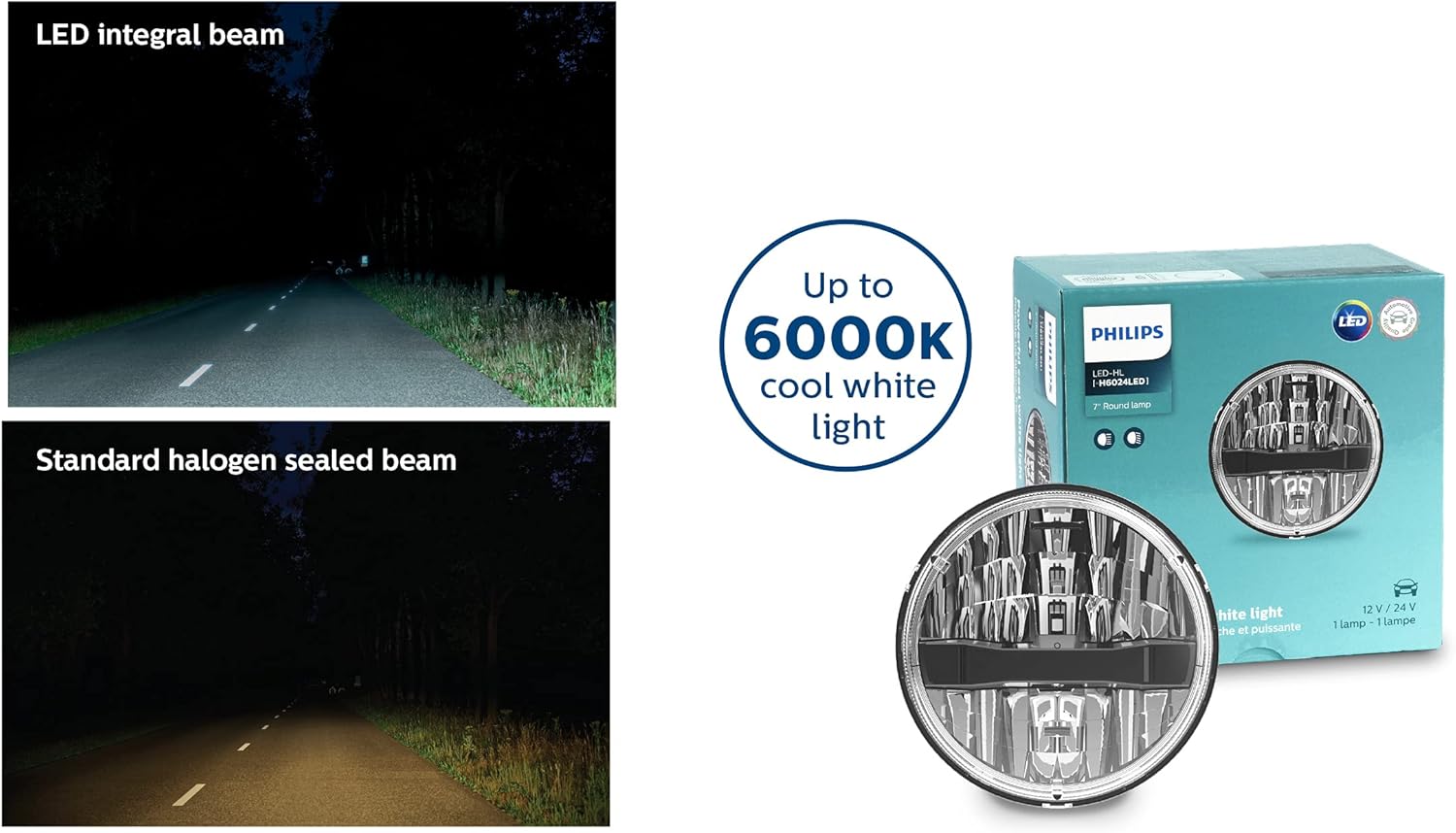 See farther down the road with Philips LED integral beam. A universal LED replacement upgrade for vehicles with sealed beam headlamp. The lamp is more durable than conventional sealed beam, with an increasded lifetime. It produces up to 6000K power cool white light, no glare, and is DOT compliant.