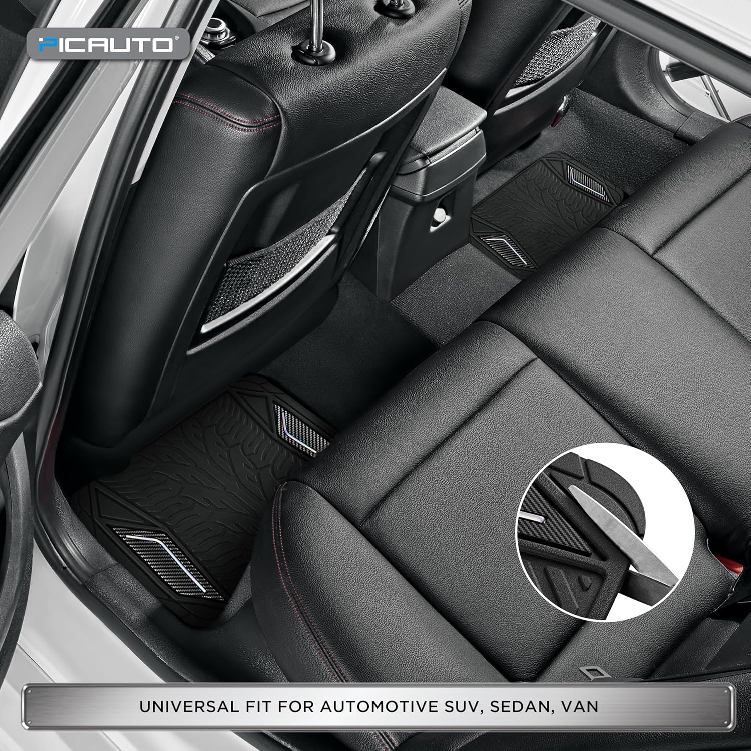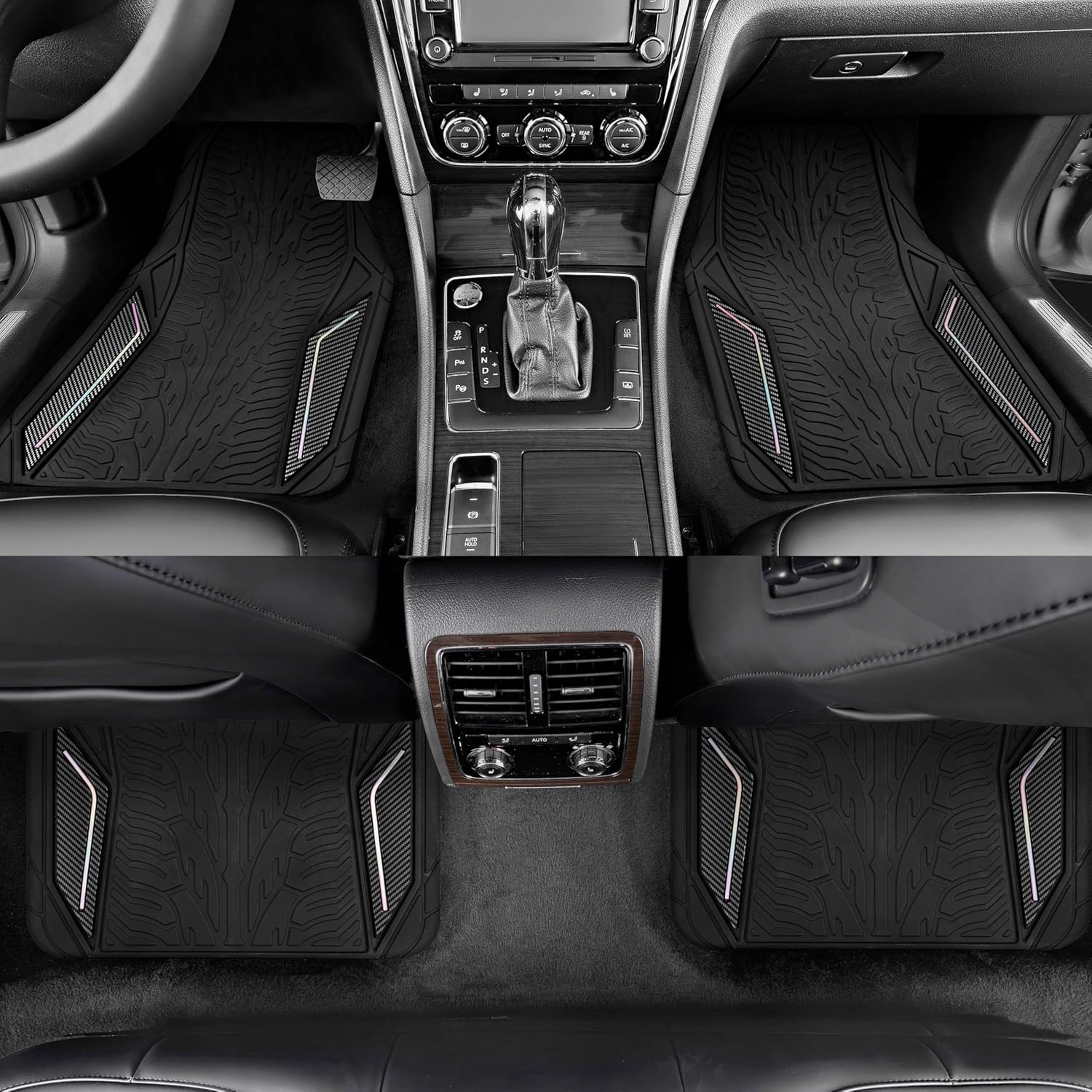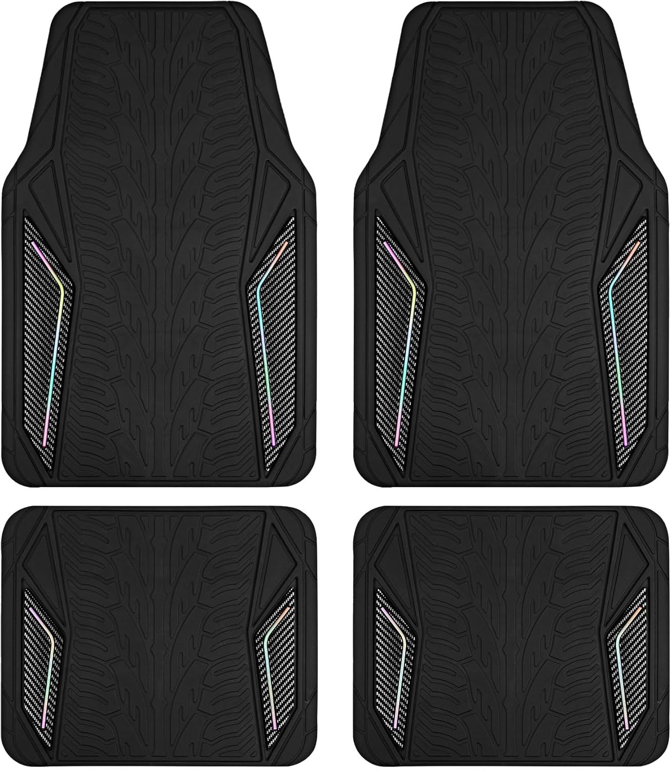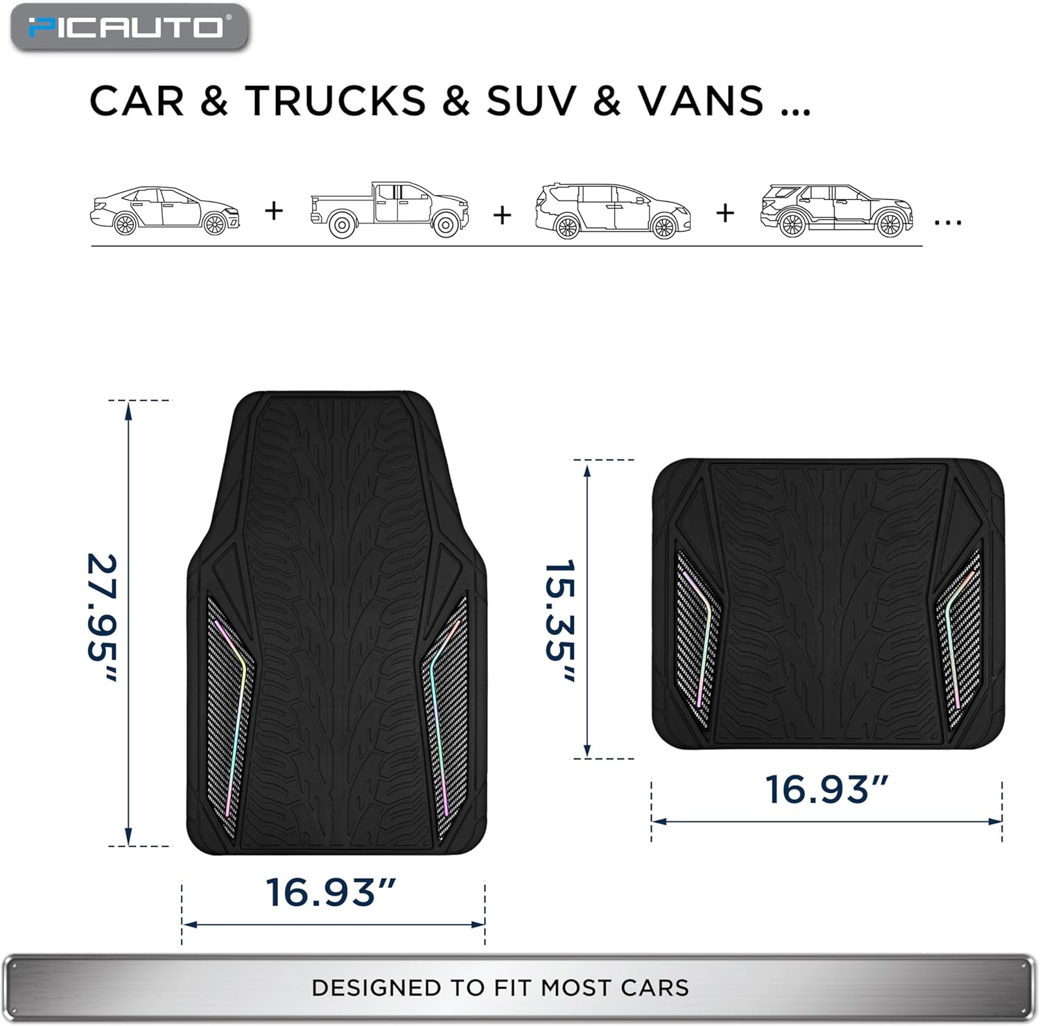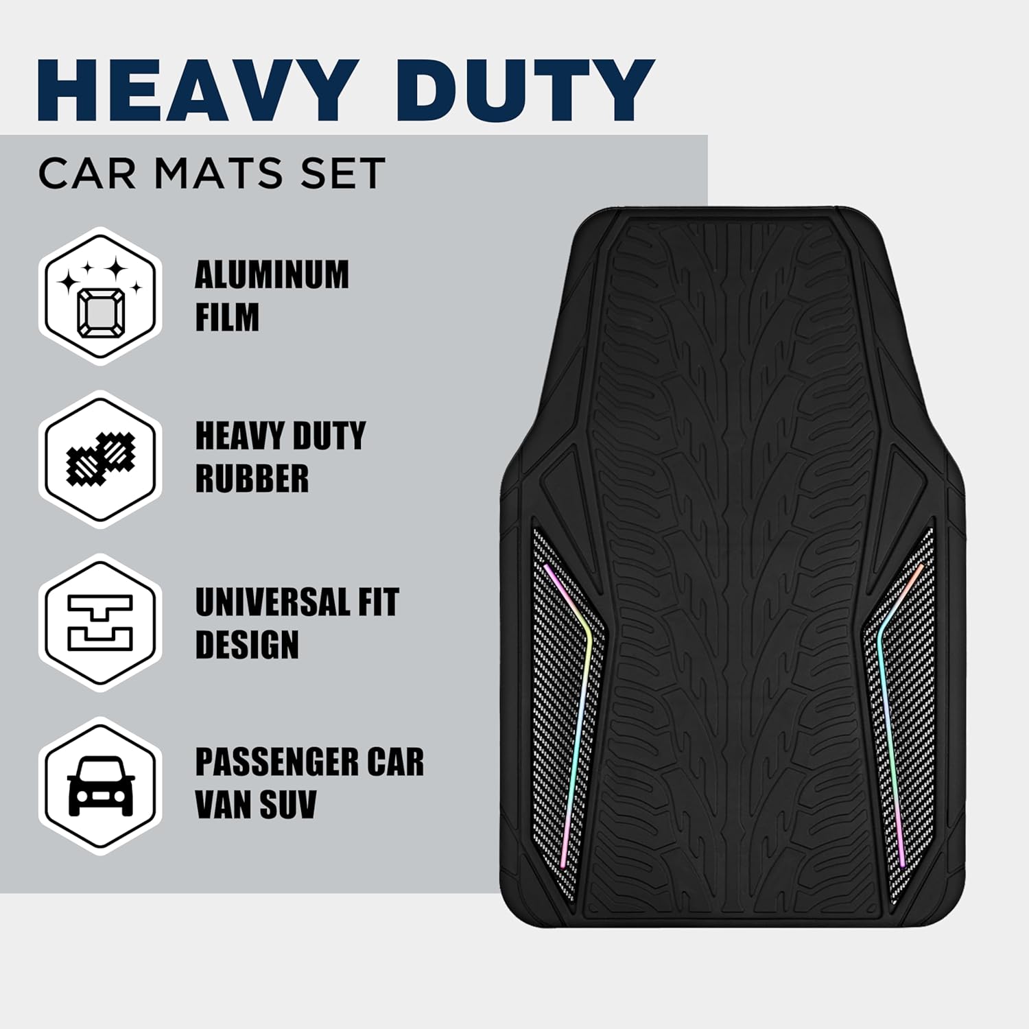 PIC AUTO Rubber Floor Mats, Black Aluminum Film with Colorful Piping Floor Mats for Cars, Car Mats with Non-Slip Backing, All-Weather Protection, Trim-to-Fit Liner for Cars, SUVs, Trucks, Vehicles