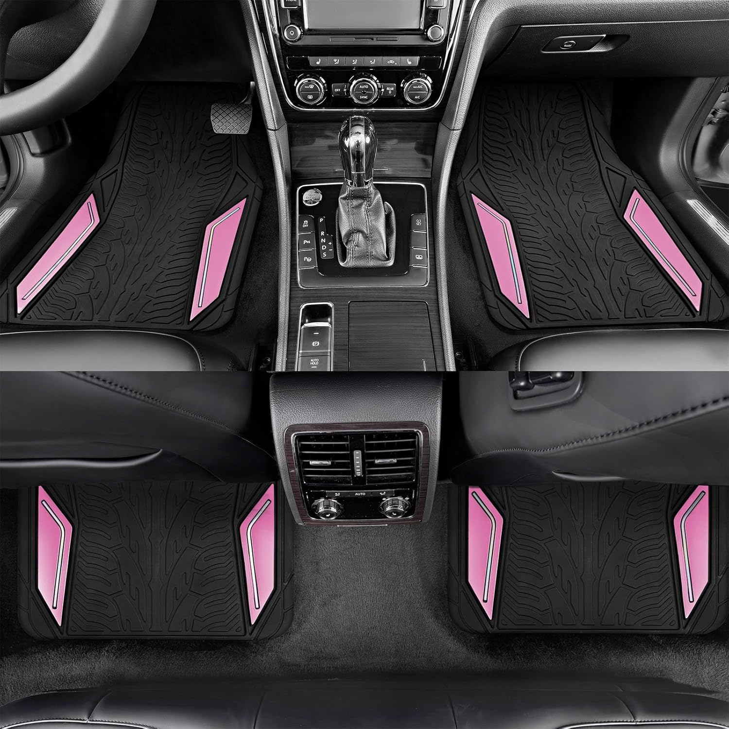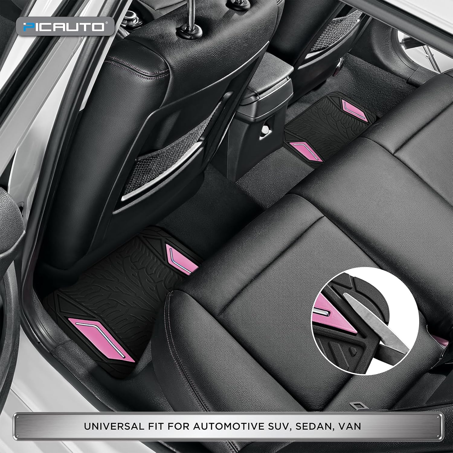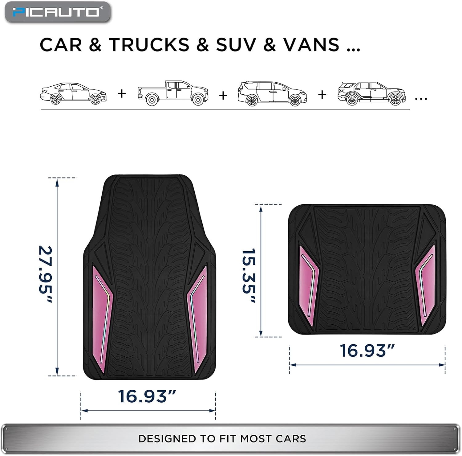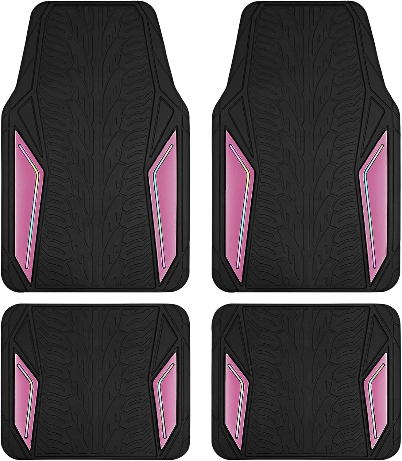 PIC AUTO Rubber Floor Mats, Pink Aluminum Film with Colorful Piping Floor Mats for Cars, Car Mats with Non-Slip Backing, All-Weather Protection, Trim-to-Fit Liner for Cars, SUVs, Trucks, Vehicles
