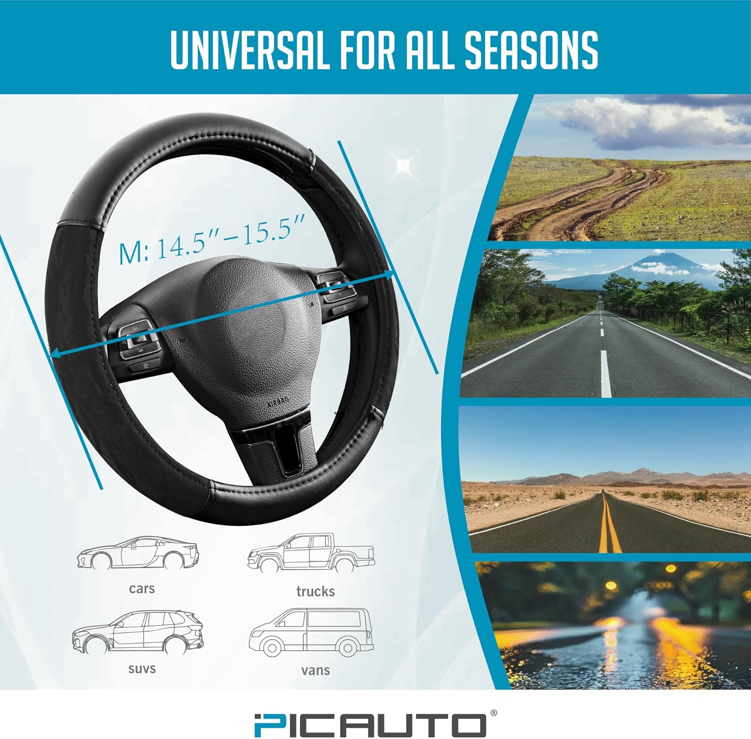 EASY TO CLEAN – The surface of the silk grain leather is easy to wipe down and maintain, ensuring your steering wheel cover always looks fresh and clean.