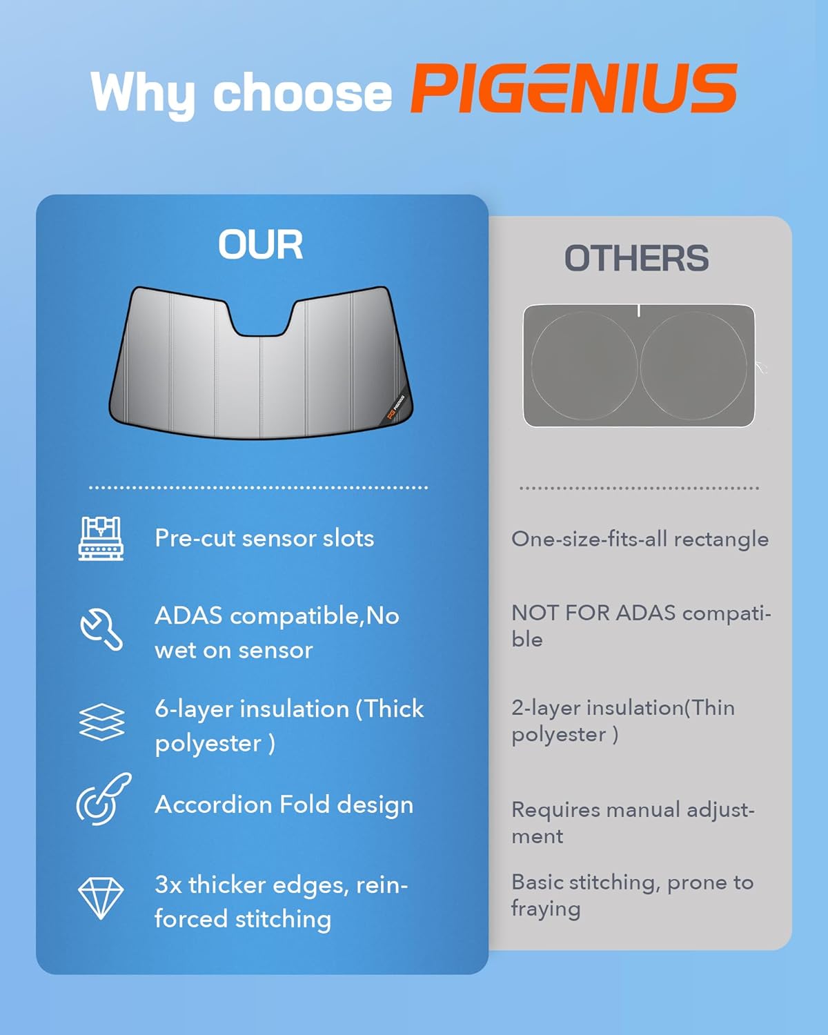 Sun shades are very simple products. All they have to do is block out the light while staying against the inside of the windshield. Yet, few sunscreens offered can do this simple task. The Pignius sun screen is slightly too wide for the Subaru Outback (2012). Also the center of the shade when installed droops away from the windshield and allow sun light into the car. Its rather cheaply made sandwiched cardboard that’s not very flexible so the installation is difficult to do and being to wide for the application will soon destroy itself from getting shoe-horned onto the windshield. Over all not that exciting of a product. The Ultimate Reflector is a great shade but since Covid price has almost tripped! Won’t spend a hundred dollars for a piece of cardboard.
