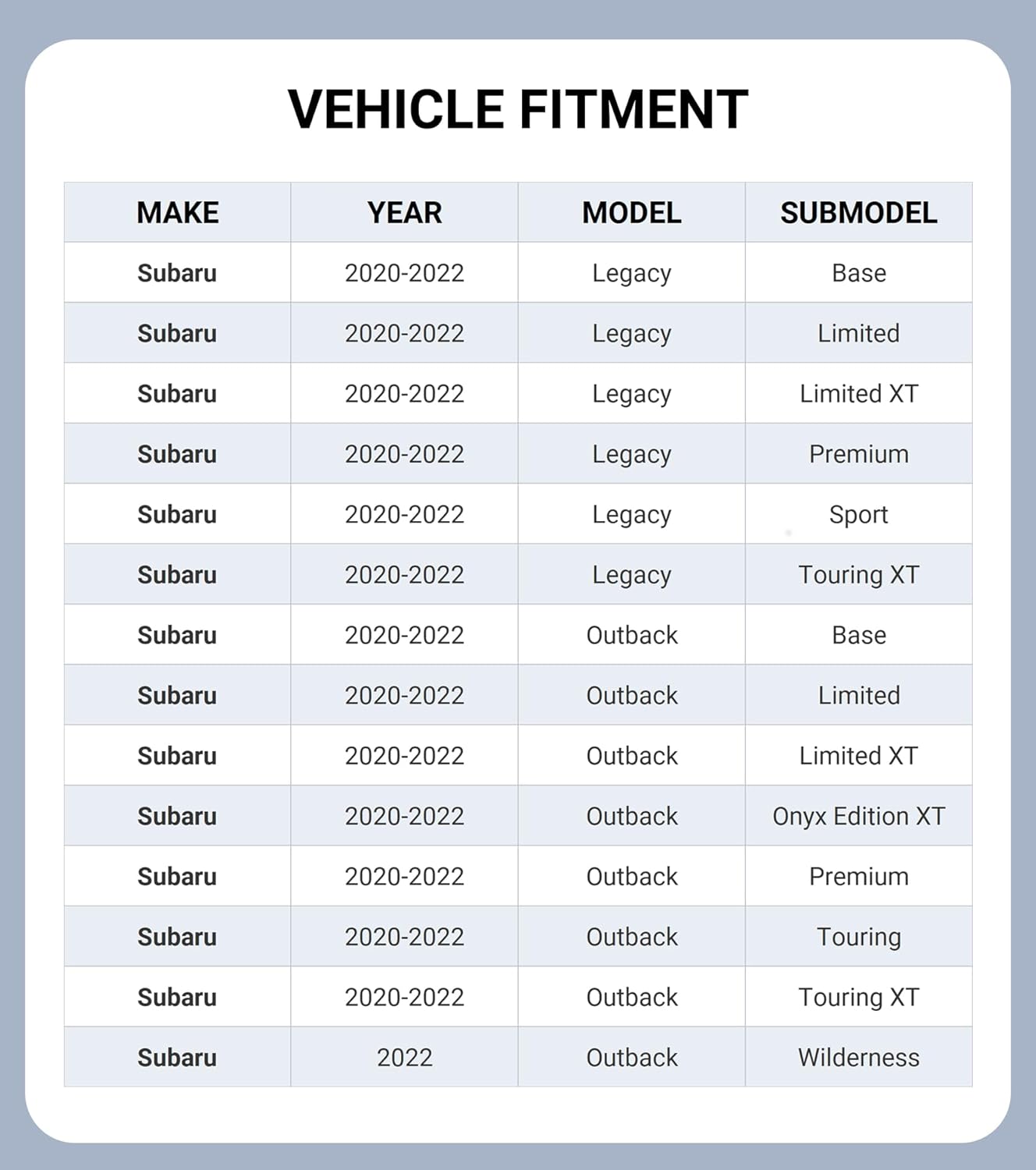 Custom Fitment: Designed specifically for Subaru Legacy/Outback 2020-2022