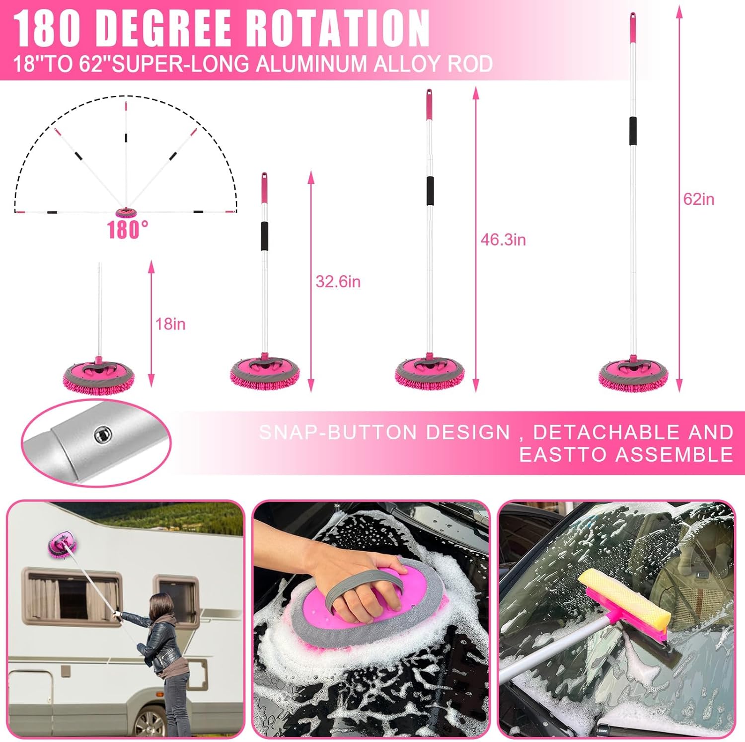 8 reviews for Pink 62″ Car Wash Brush with Long Handle,Chenille Microfiber Car Wash Mop Sponge Mitt ,Windshield Window Squeegee,Wheel Brush,Car Detailing Brushes,Car Duster,Towel,Car Cleaning Kit for Cars RV Truck