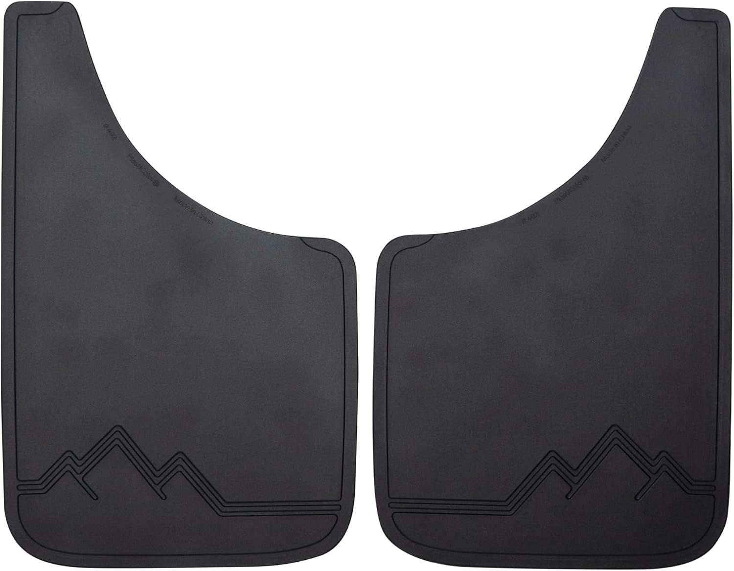 PlastiColor Black Off Road Scene Easy Fit Mud Guards are the most colorful and durable flaps with a patented, fiberglass backing that not only keeps them from cracking or splitting, but also adds memory to keep their shape. They are also made of a specially formulated PVC that will easily withstand sub-zero temperatures and extreme heat without cracking.These Easy Fit mud guards feature an easy-to-install design, and includes all the necessary hardware which facilitates easy installation.