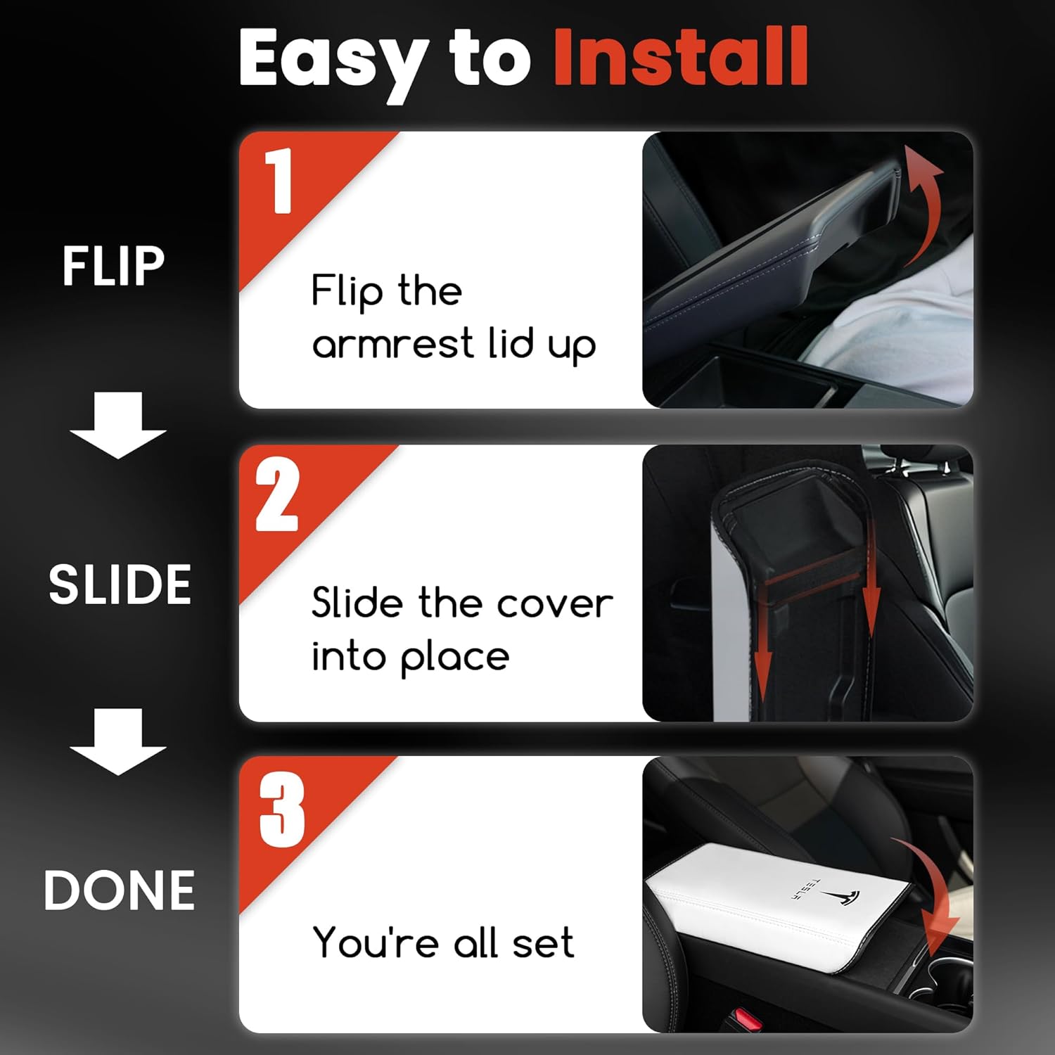 This Tesla Model Y armrest cover is a major disappointment and a clear case of false advertising. After searching extensively for a genuine, high-quality “leather” cover, I’ve found that many of these products are deceptively marketed, and this one is no exception.Misleading Quality: This is absolutely NOT the high-quality leather shown in the listing. The material feels cheap and looks nothing like the professional photos.Abysmal Workmanship: The “neat and even stitching” promised is non-existent. Instead, the stitching is crooked and misaligned, showing zero attention to detail.Defective Design: The elastic band is so poorly executed that it leaves the cover distorted and malformed. It looks terrible once installed and ruins the interior aesthetic.Unprofessional Presentation: The product arrived with no official packaging—it was simply stuffed into a generic, clear plastic pouch.Save your time and your money. This product is a far cry from what is advertised, and I highly recommend looking elsewhere for a premium alternative.