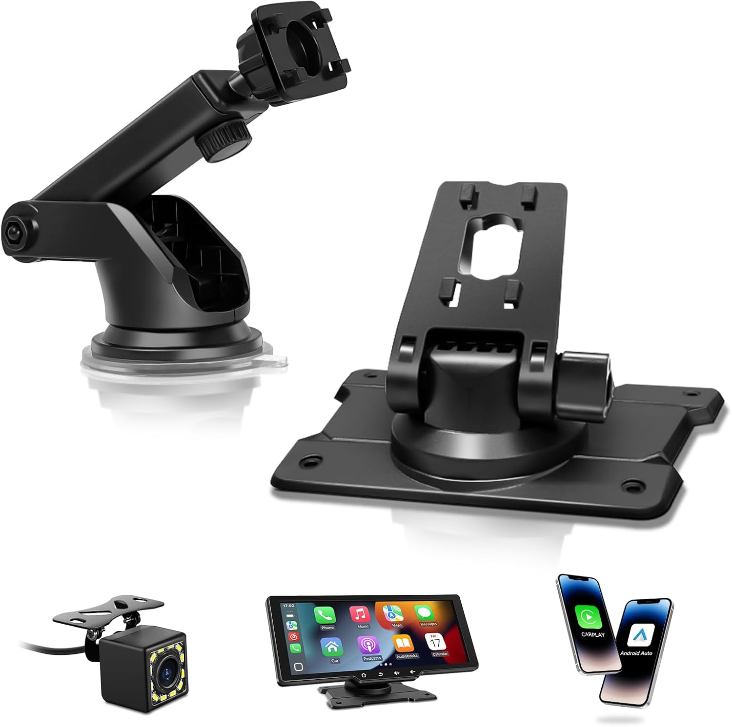 【1080P Rearview Camera】: Our car play screen is equipped with a 23ft HD backup camera (1080P, 120°viewing angle, waterproof), automatically activating when you shift into reverse. When the camera’s red wire is connected to the reverse light, the portable carplay screen automatically shows the reverse image, making backing up smoother and safer. Note: This camera is for reverse assistance and real-time rearview monitoring only, it does not support recording.