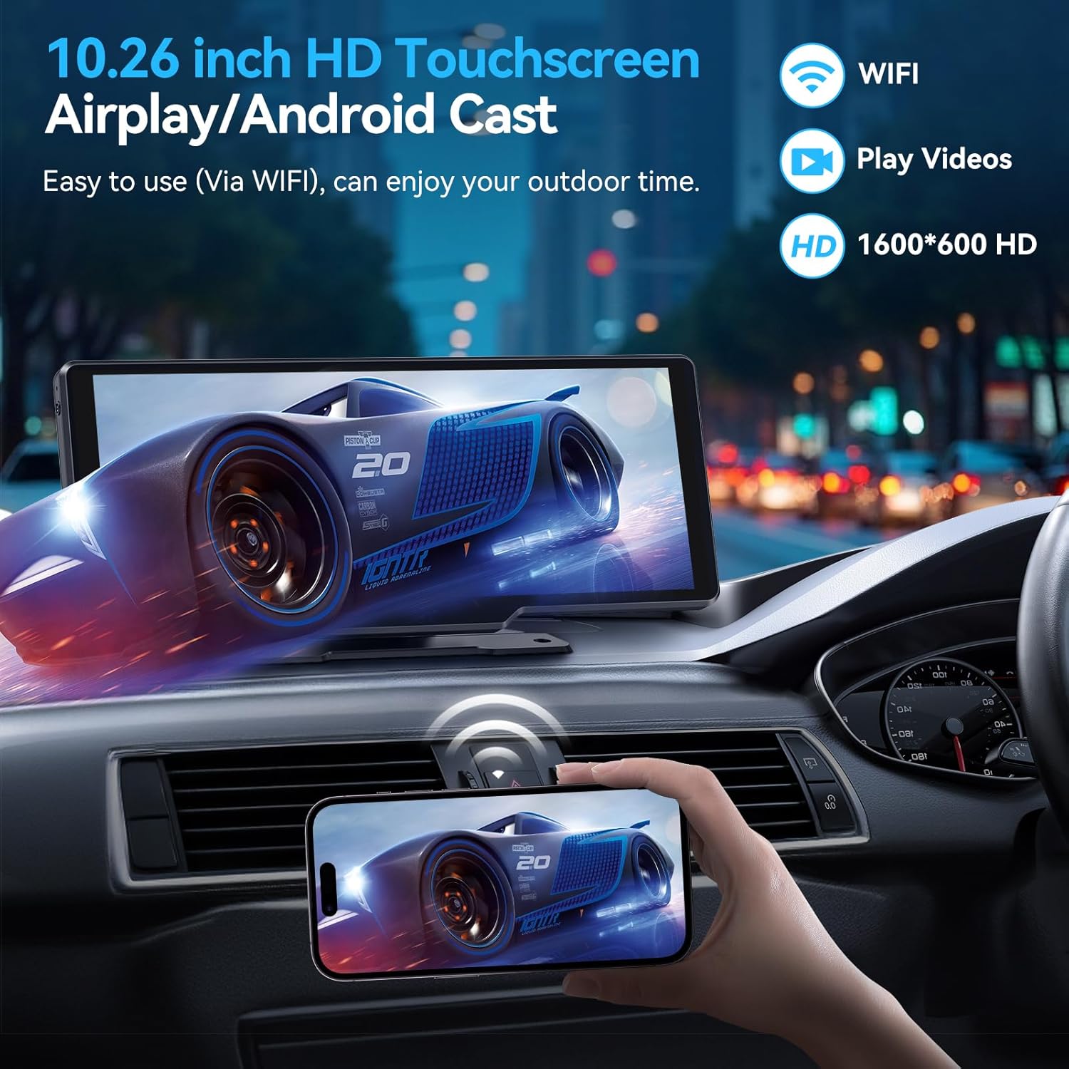 【High Performance 10inch IPS Touchscreen】: Our car play screen supports mirror Link for almost all smartphones. Featuring a crystal-clear 1600*600P Touchscreen making car play screen for my car plug in perfect for syncing media player, navigation and play Youtube, TikTok, and so on. This android auto screen is compact and space-saving, providing a clear front view that prevents obstructing the driver’s line of sight.