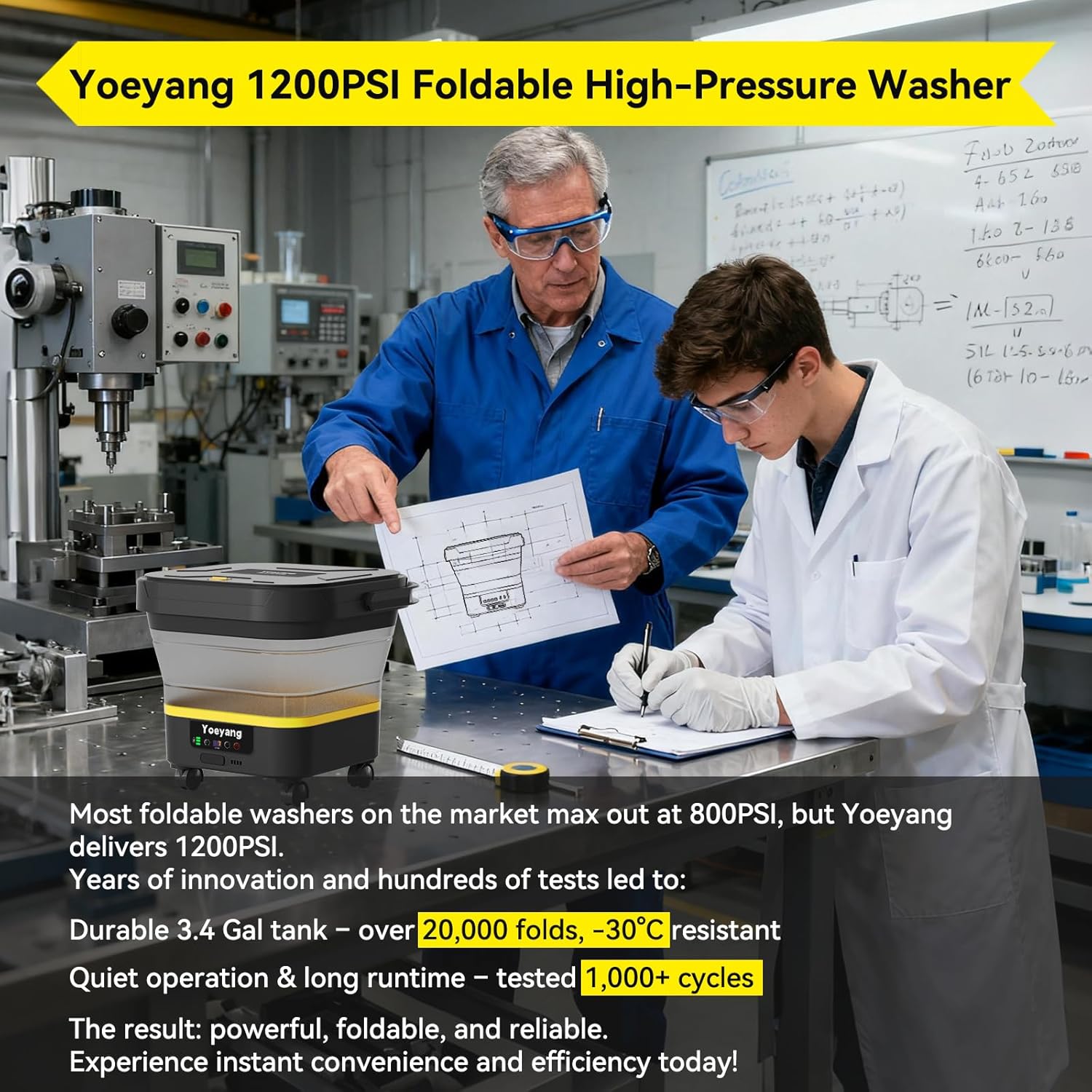 【Foldable 1200 PSI Power – Compact Yet Powerful】Experience real cleaning power anywhere! This 1200 PSI foldable washer weighs just 1.26 lbs—light enough for women, seniors, and even teens to use comfortably. Its compact design fits easily in your car trunk, RV, or closet—ideal for home cleaning, balcony washing, RVs, road trips, and outdoor adventures where space is limited.
