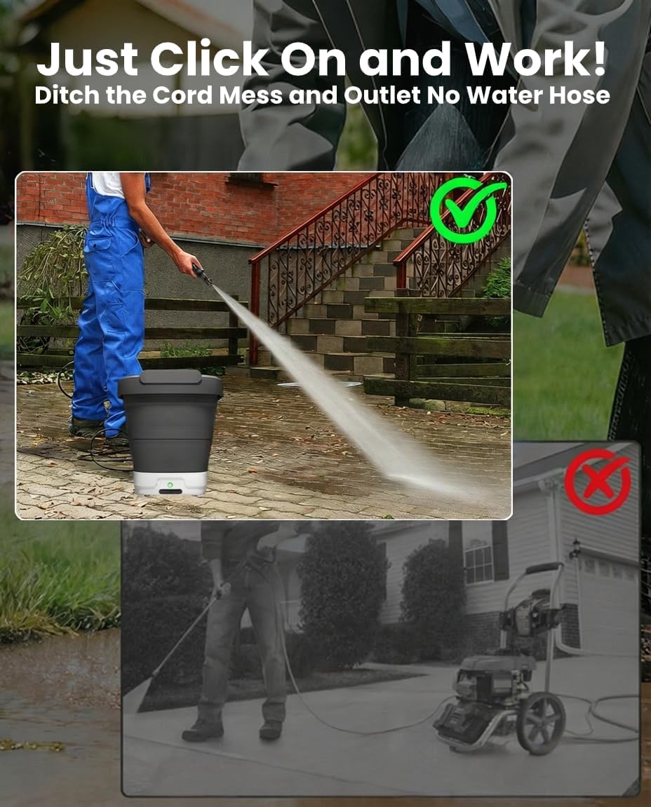 Portable Electric Pressure Washer w/3.2Gal Tank, 4-in-1 Nozzles, Max 290 PSI Foldable Cordless Pressure Washer for No Water Hose Apartment, Camping, Bike Cleaning, Garden Care and Pet Cleaning