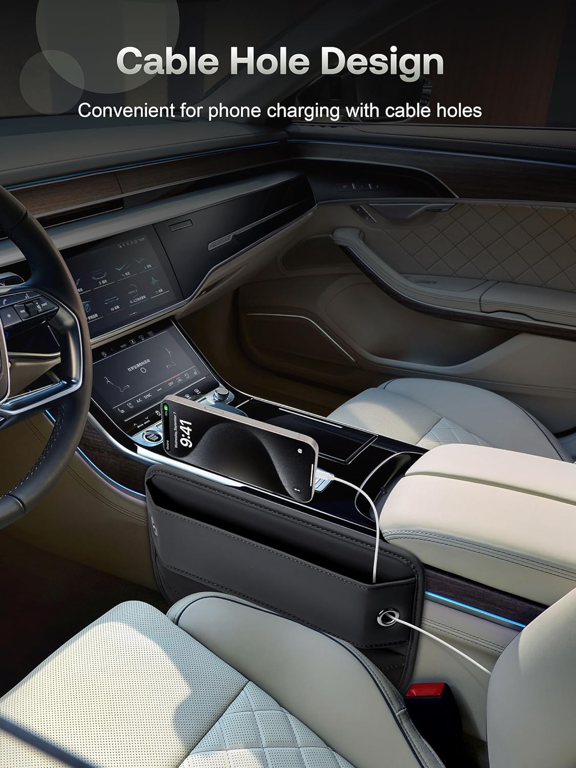 【SMART EXTRA STORAGE SPACE】- This car seat gap organizer turns unused space into convenient storage for phones, cards, coins, and small essentials. Compact design keeps your items within reach without reducing legroom.