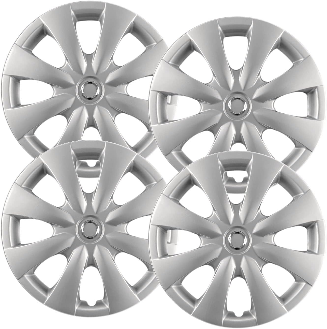 Premium Quality 15inch Silver Hubcaps / Wheel Covers fits 2009 2010 2011 2012 2013 Toyota Corolla, Heavy Duty Construction (Set of 4) (61147AMS-4)