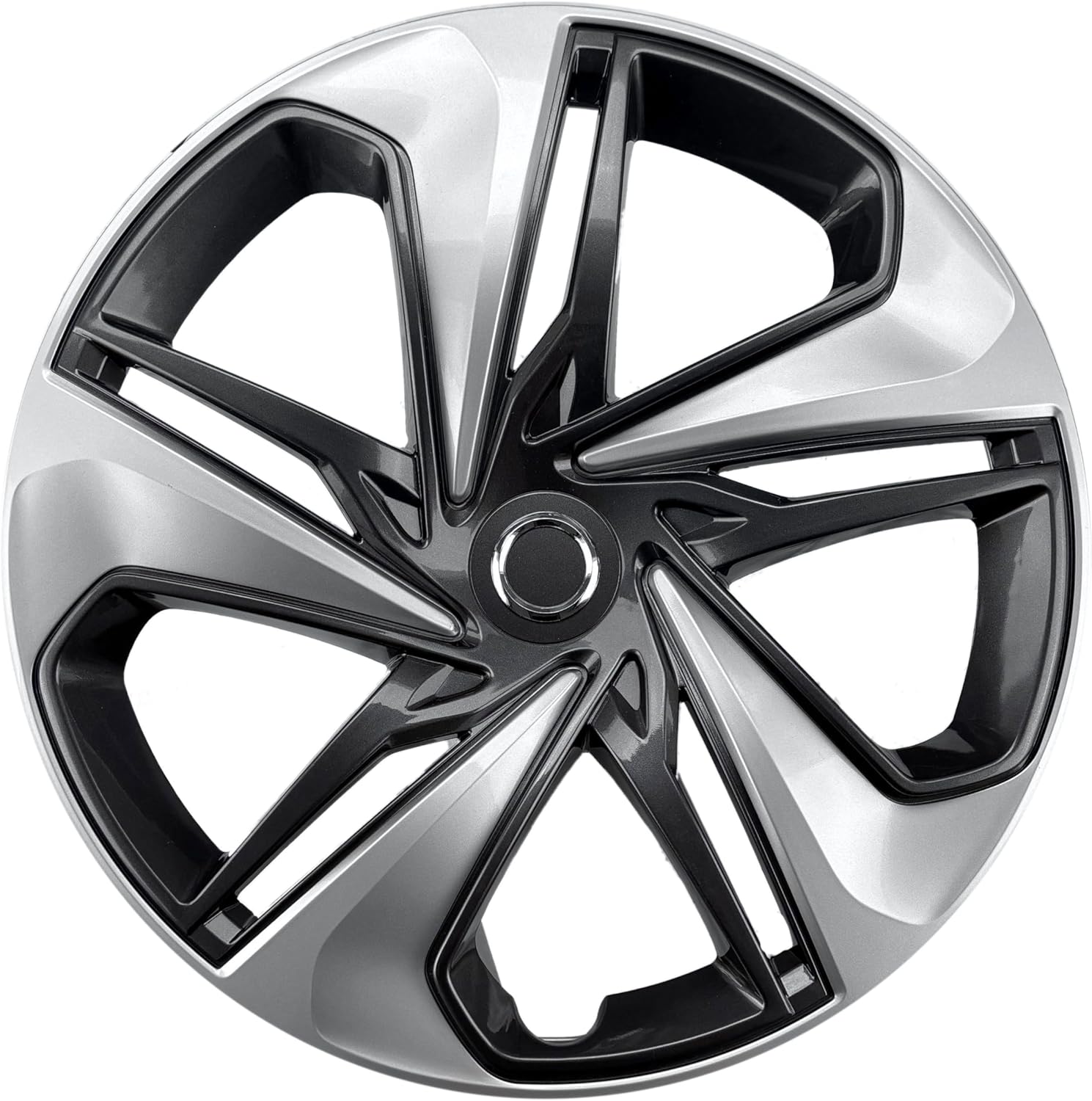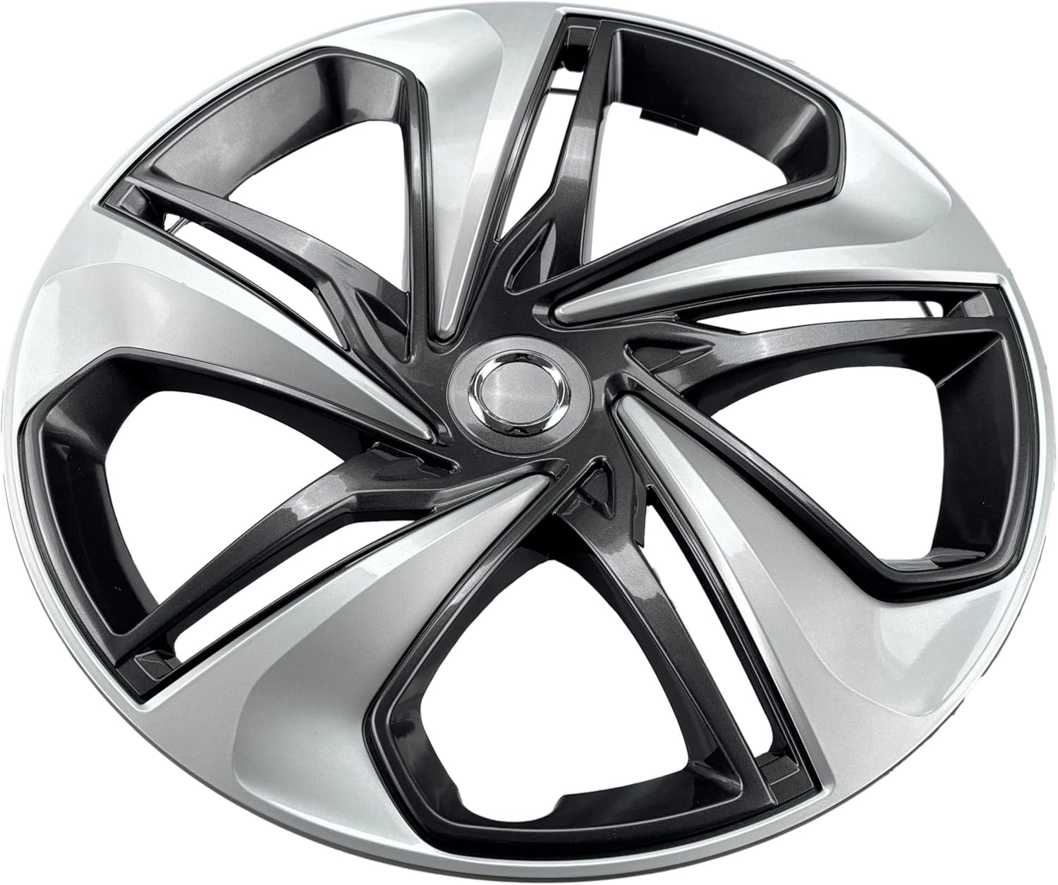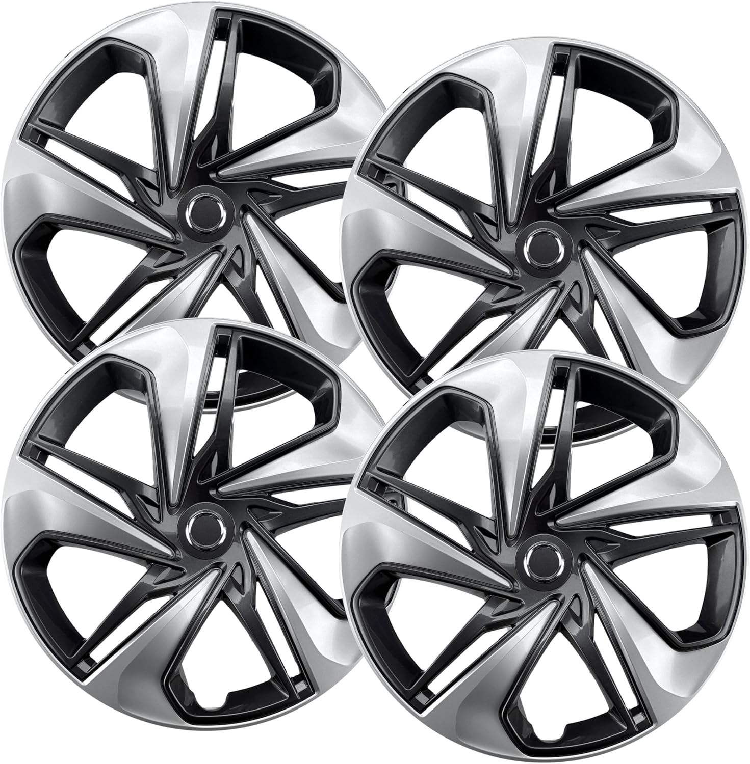 Premium Quality 16 inch Silver/Charcoal Hubcaps fits 2019 2020 2021 Honda Civic, Heavy Duty Solid Clip Construction (Set of 4) (55103AMS-4)