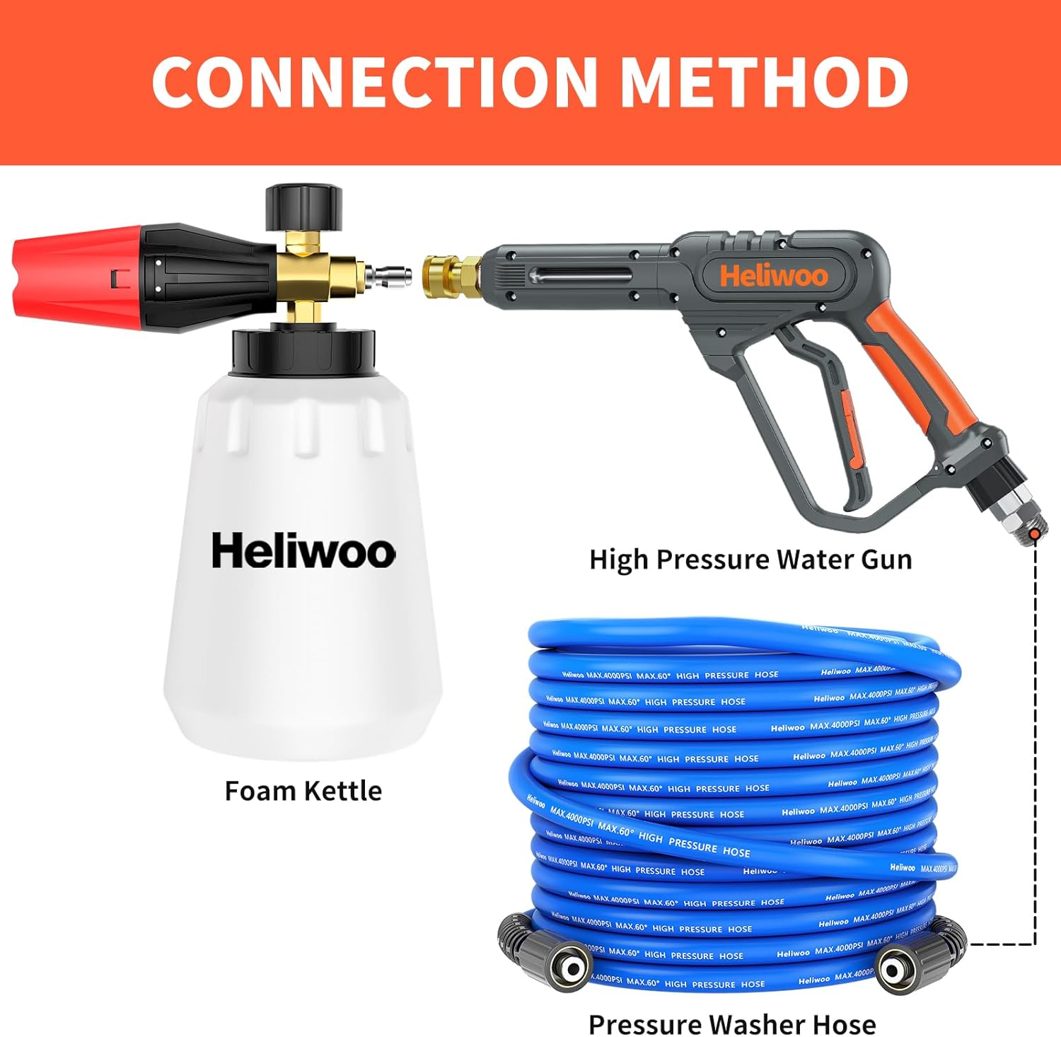 Heliwoo pressure washer gun kit includes 7 different spray angles