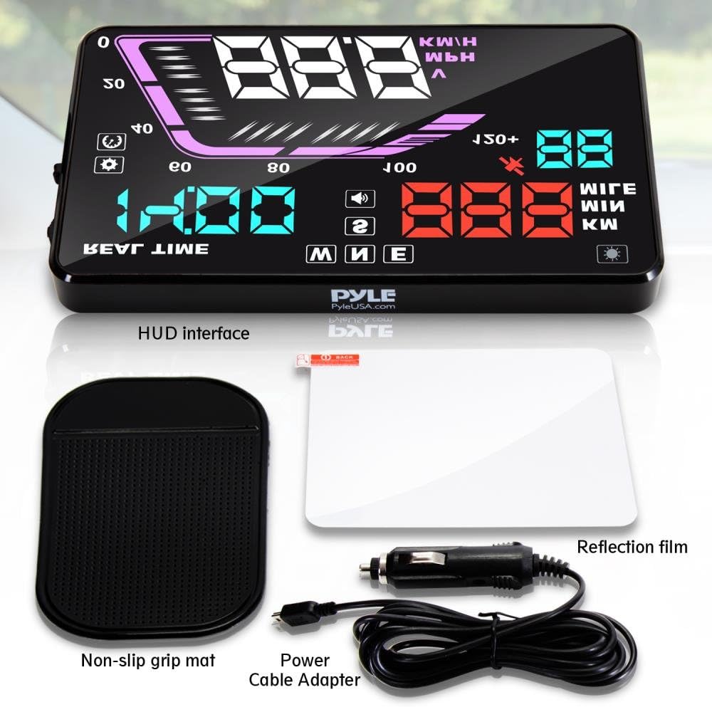 The PYLE PHUD15 Heads Up Display HUD Screen is designed with the driver in mind for the ultimate in providing a safe driving experience, projecting important information on windshield at the eye level of the driver, enabling you to read information instantly & clearly without taking eyes of the road in-front.