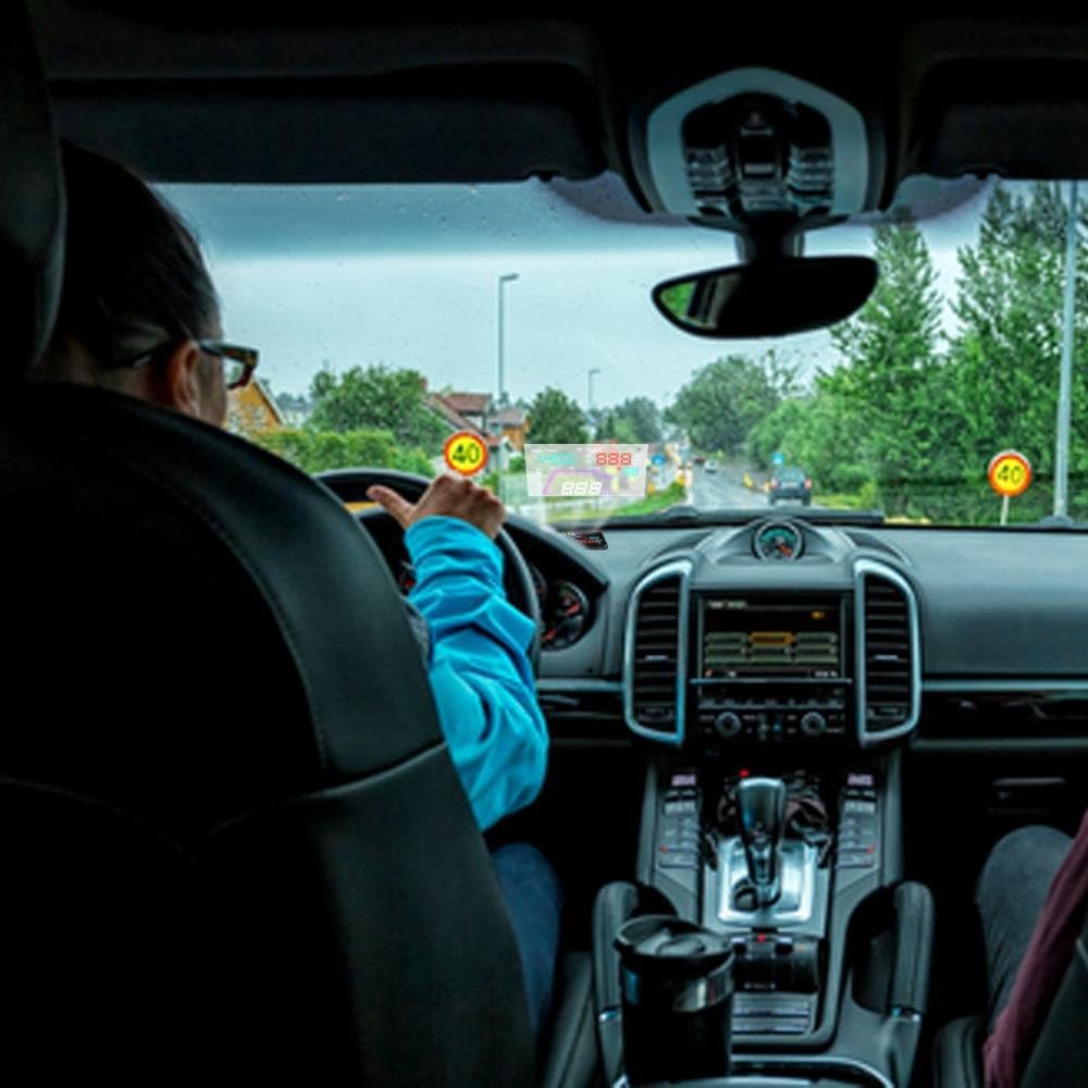 ESSENTIAL DRIVING DATA – Displays speed, driving direction, driving time, driving distance, altitude & more. With no need to take your eyes off the road all vital information projected in full color display right onto the windshield in-front of you.