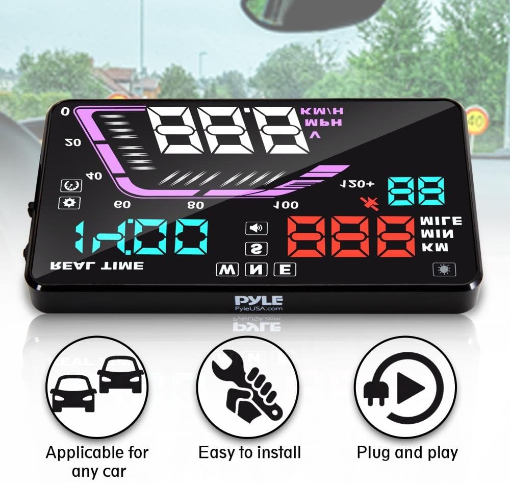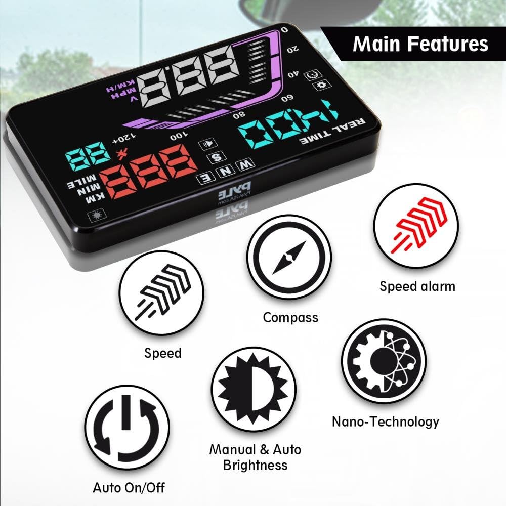 MULTI COLOR DISPLAY – 5.5 inch multi-color digital LED display with integrated light sensors for automatic image balance for clear readout & visibility during daytime or nighttime driving. Make your travel experience safer today with PYLE HUD.
