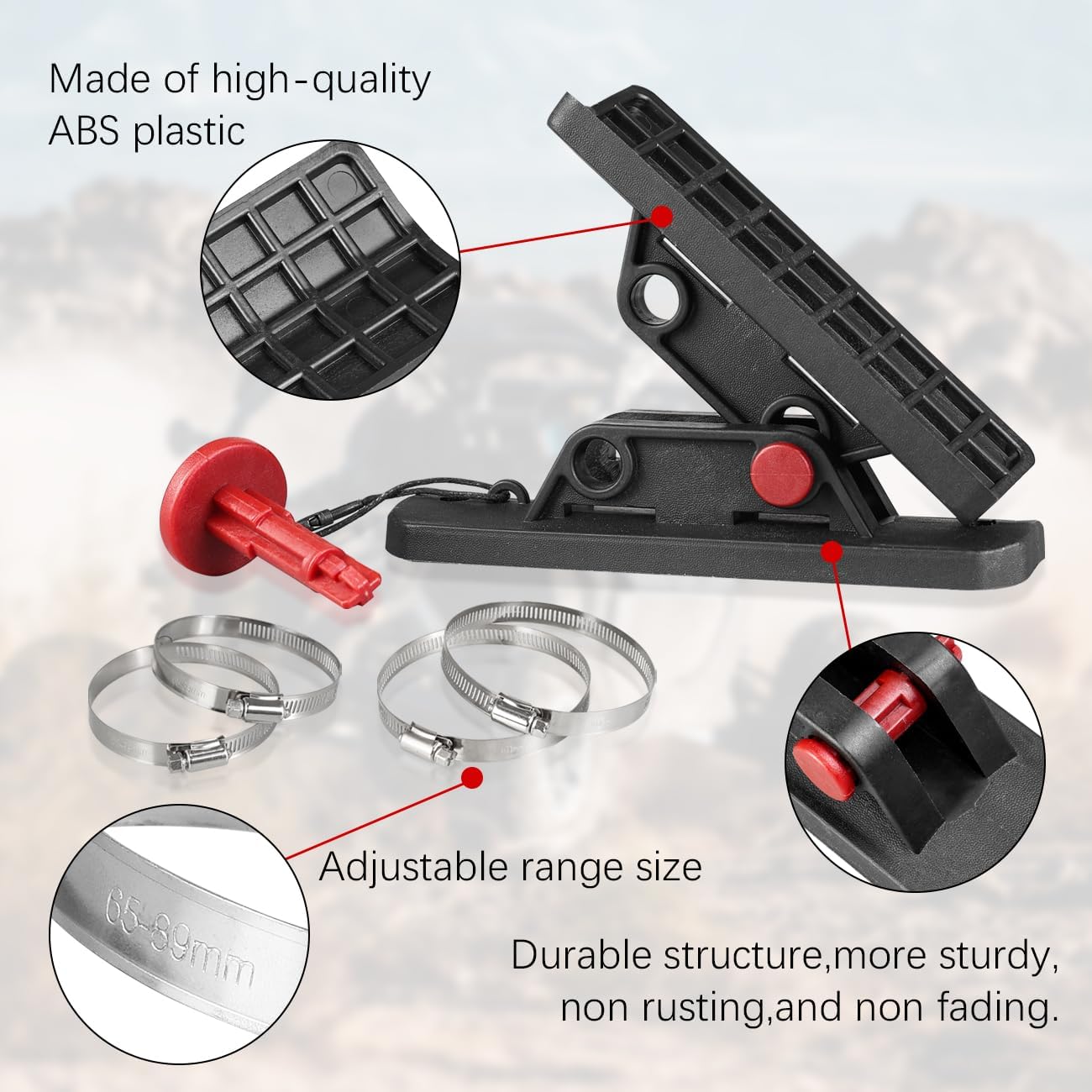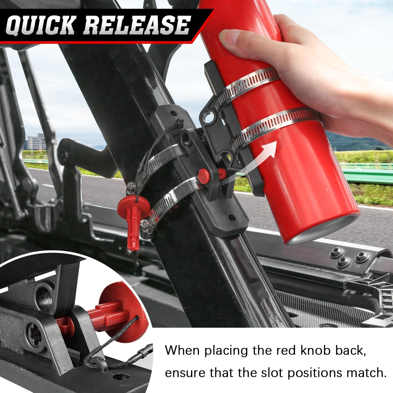 If you’re like me and prioritize safety while on the trails, this fire extinguisher holder is about to become your new best friend. This ABS plastic marvel is not only lightweight but also seems to be tougher than the nails I bent trying to install it.First off, it fits a range of vehicles because it’s just a bracket and hose clamps. Whether you’ve got a Bronco, a Wrangler, or a UTV, this holder has you covered. In my case, it was a CFMoto UTV, and while it was a bit of a puzzle to install, it was like a satisfying game of Tetris once I figured it out.The adjustable hose clamps are sturdy, which is good because I wouldn’t want my fire extinguisher to go rogue on a bumpy trail. The quick-release mechanism is a a bit tight, but appropriate for the application. Pull the red knob (really hard) and voilà, your fire extinguisher is ready for action. It’s so easy, even my dog could probably figure it out if she had opposable thumbs.Installation is straightforward if you enjoy a bit of a challenge. The lack of instructions turned it into a fun guessing game—thankfully, I enjoy puzzles. A bit of advice: play around with it a bit before committing to a spot. And don’t worry about the pin being tight; better that than having it fall out mid-bump, causing your extinguisher to play a game of “dodge the trail obstacles.”While it does its job well, the installation process could use some improvement. Instructions would have been a lifesaver, and trimming the extra length of the clips is necessary. Once in place, it looks decent and seems like it will last longer than my patience during installation.In summary, this holder is sturdy, secure, and easy to use. Just make sure you’ve got a bit of time and patience set aside for installation. Once it’s in place, you can tackle those trails with one less thing to worry about. Highly recommended for anyone who doesn’t want their fire extinguisher to become a projectile on rough roads!
