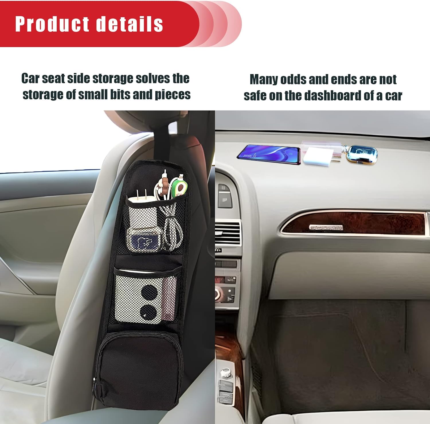 SIZE OF THE BAG: The size is: 17.7″×5.5″. The stretchable, elastic storage bag perfectly covers both sides of the car seat, comfortable fit, does not take up too much space and is universally suitable for most cars and SUVs.