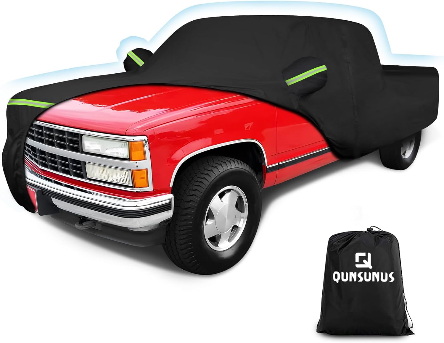 QUNSUNUS Waterproof Truck Cover for Chevrolet C/K 1500/2500/3500 1988-1999, Outdoor Truck Cover with Zipper, Full Exterior Car Covers for Automobiles All Weather with Wind, Sun, UV and Dust Protection