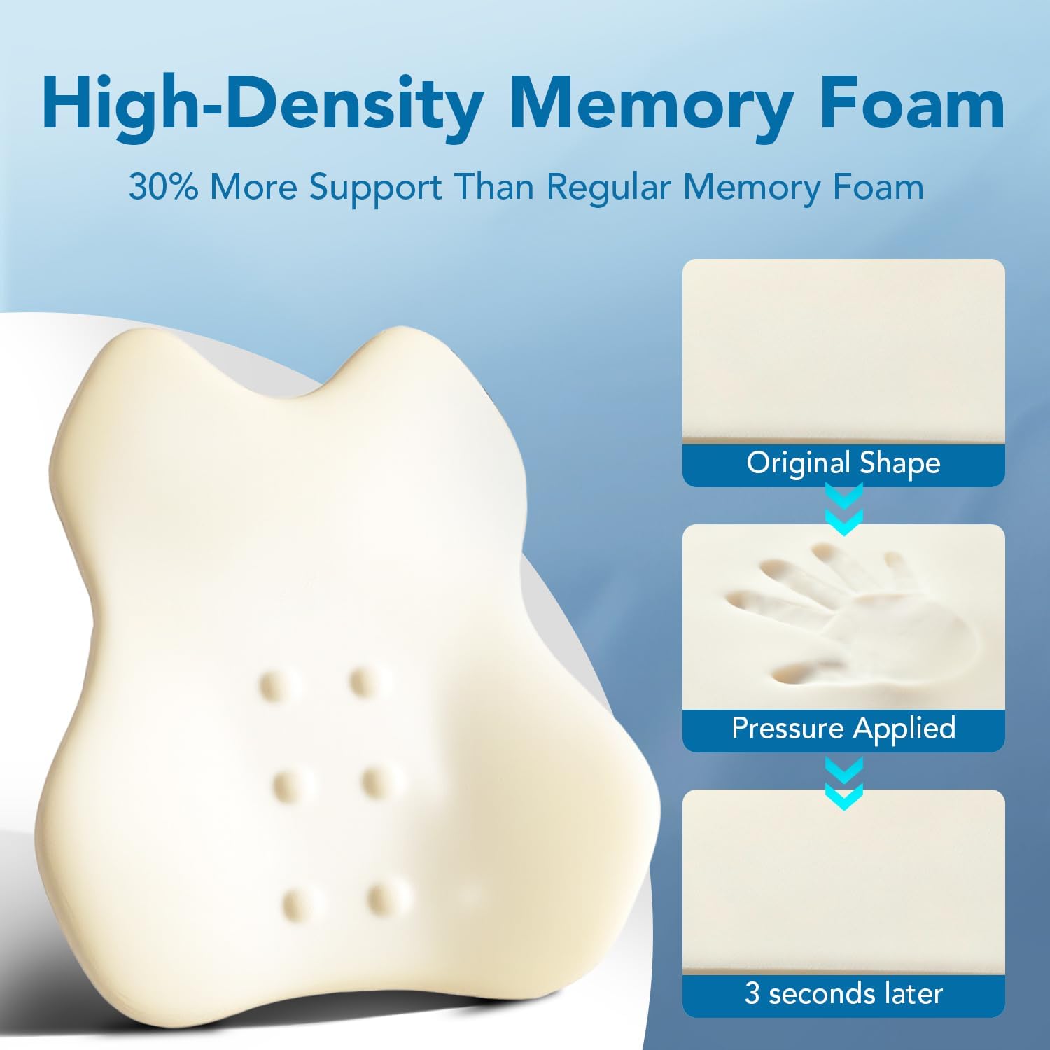 𝐏𝐑𝐄𝐌𝐈𝐔𝐌 𝐇𝐈𝐆𝐇 𝐃𝐄𝐍𝐒𝐈𝐓𝐘 𝐌𝐄𝐌𝐎𝐑𝐘 𝐅𝐎𝐀𝐌: High density, strong support, soft and slow rebound Premium Memory Foam. The back cushion adapts to the contours of your back, providing personalized support and relief from discomfort associated with extended periods of driving.