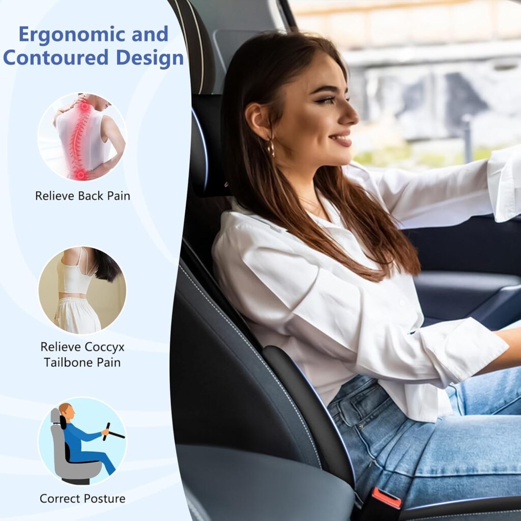 QUTOOL Lumbar Support Pillow for Car, Truck Accessories Travel Essentials, Memory Foam Back Cushion for Driving Seat, Back Pain Relief,Washable Cover, Lower Back Support Fits Most Cars(Black)