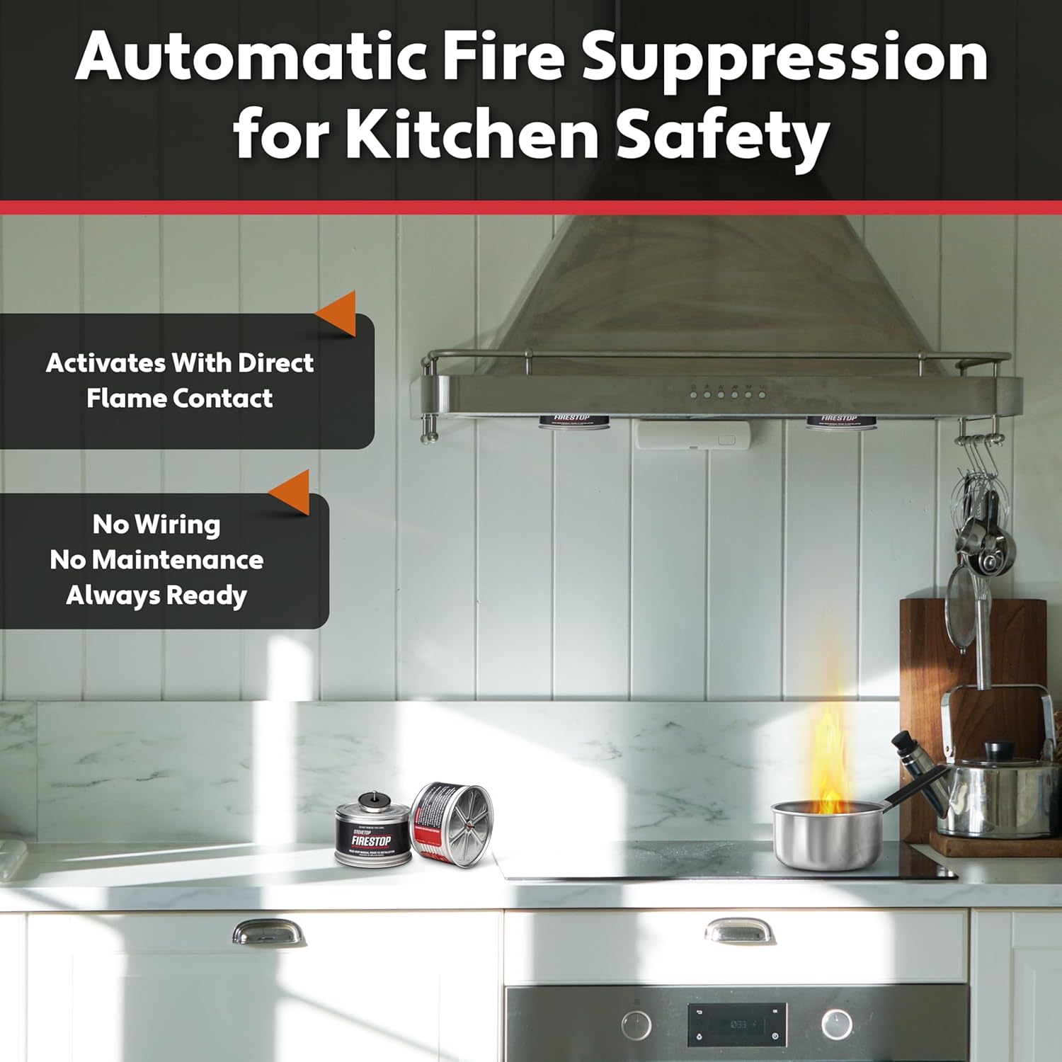 Rangehood® Fire Suppressor – Automatic StoveTop Fire Suppressor for Residential Kitchen Safety – Easy to Install, Direct Flame-Activated, Non-Toxic Fire Suppression System (1 Pair)