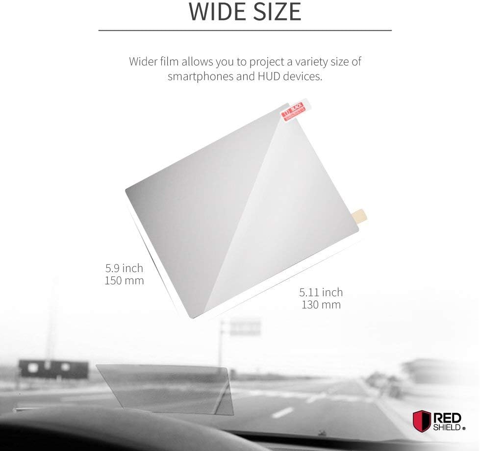 RED SHIELD Universal Head Up Display HUD Reflective Windshield Film 7.5″ for All Car Makes and Models. Premium Quality High Definition HD Clarity. Compatible with All HUD Units and Smartphones. 2 PK