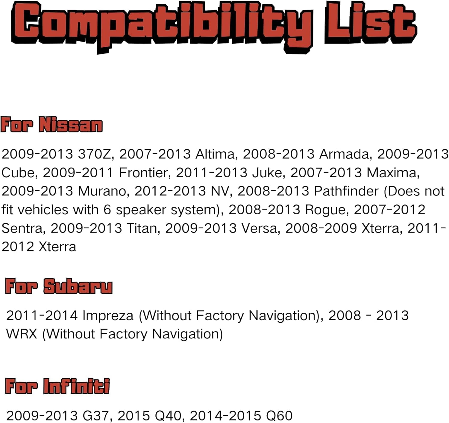 Select for 2008-2013 Nissan Armada Pathfinder Rogue, 2011-2014 Subaru Impreza Install Aftermarket 20 PIN Stereo