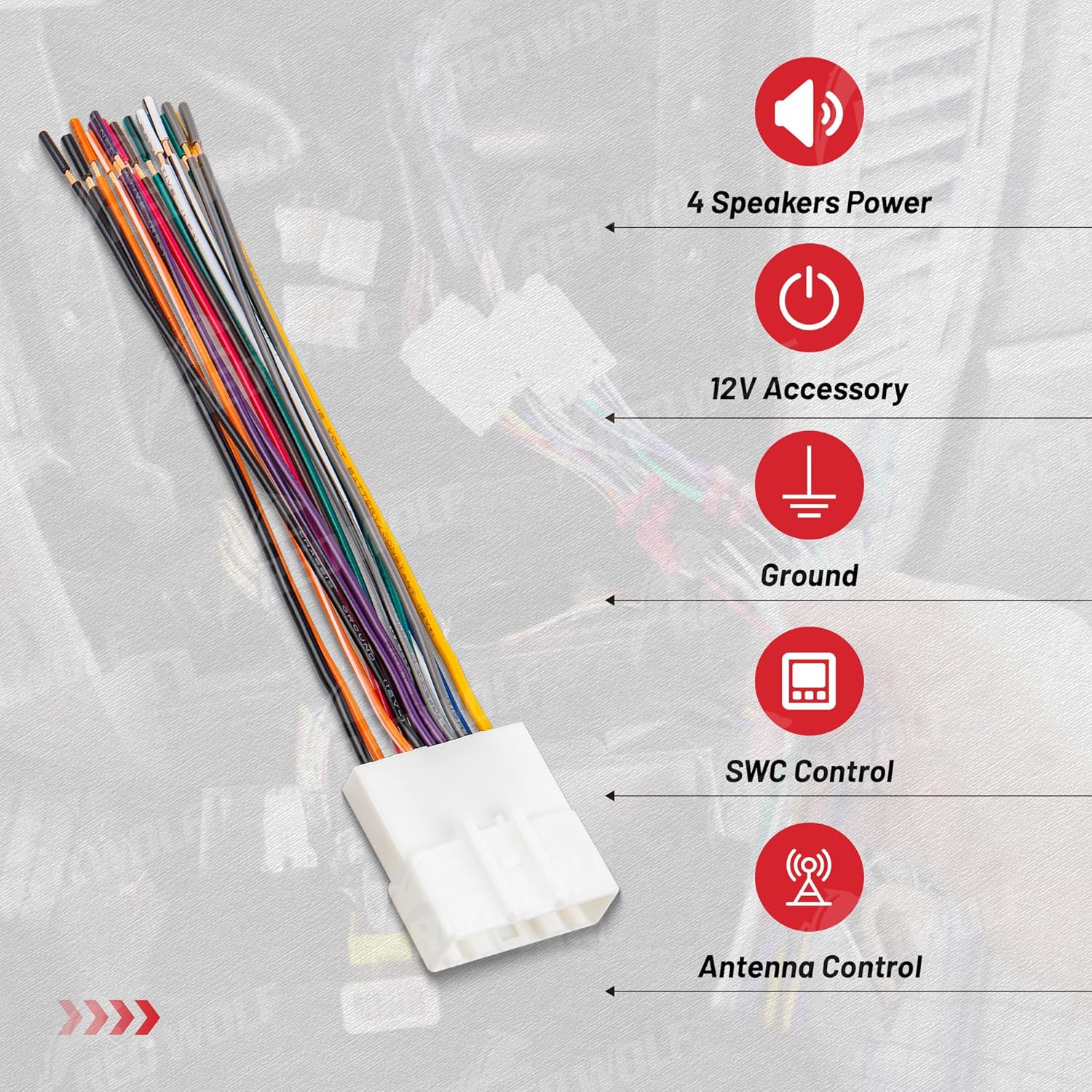 Pre-stripped Wire Installation: Radio harness for Nissan easy to install without cutting any OEM wiring harness; 20 pin stereo harness provides 4 speakers, ignition, 12V accessory, ground, and SWC