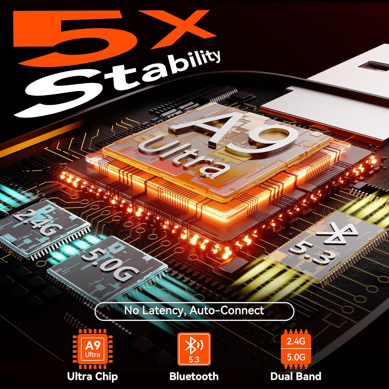 【Lightning-Fast Smart Connect】 Seamless Apple CarPlay integration with top-tier 5.8GHz WiFi & Bluetooth 5.3, plus a next-gen chip—3x faster data transfer than standard adapters. 10-second first setup, 3-second daily auto-reconnect. Zero lag for navigation, music, hands-free calls. Control maps, playlists, messages via Siri, touchscreen or dashboard—minimizes distractions, maximizes safety.