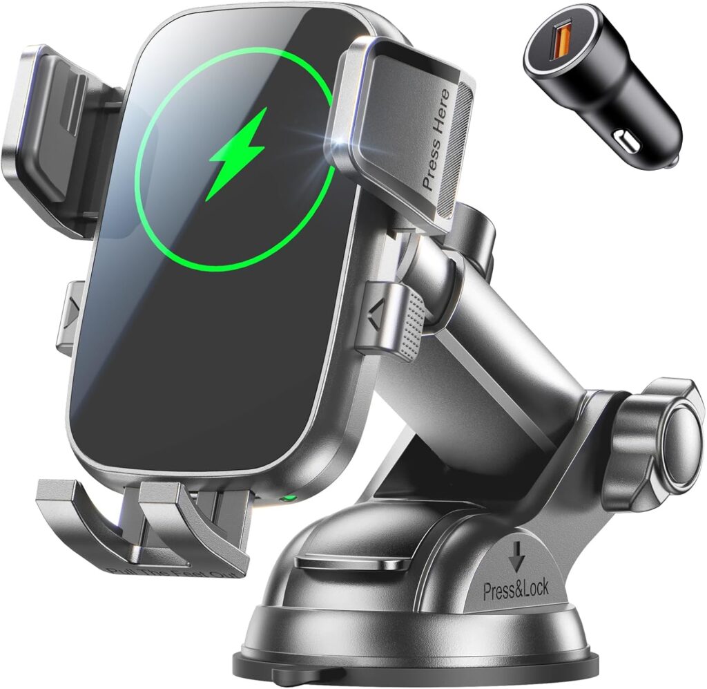 Charges so quickly and is perfect for a car if you hate wires. Only thing I don’t love is that you can’t pull the cord very far, so I find it a little difficult to play on my phone while charging it in the passenger seat. It is also a bit bulky, but still better than a ton of wires. The wires bounce easily pack into the port.