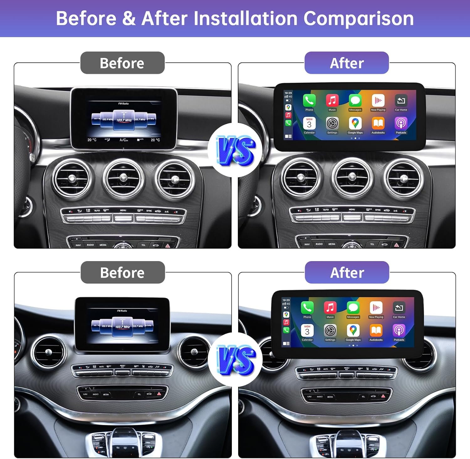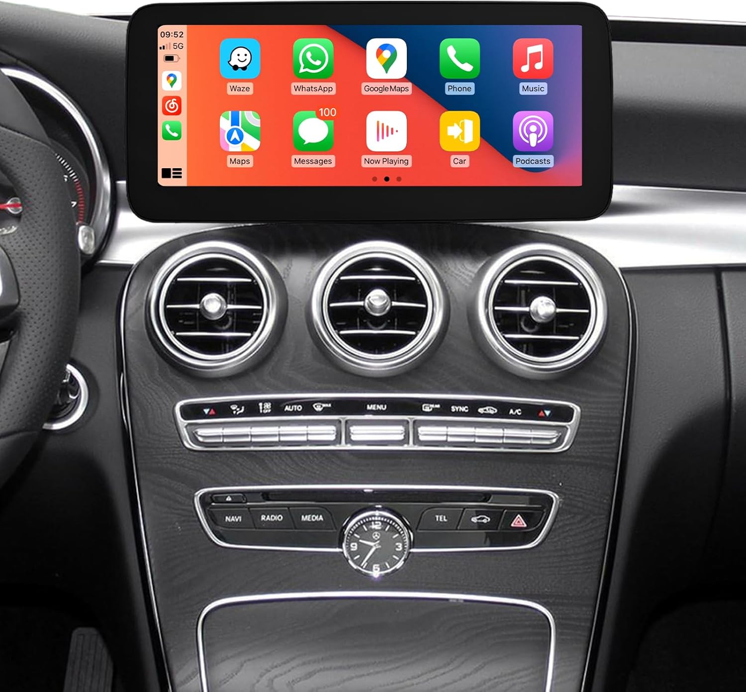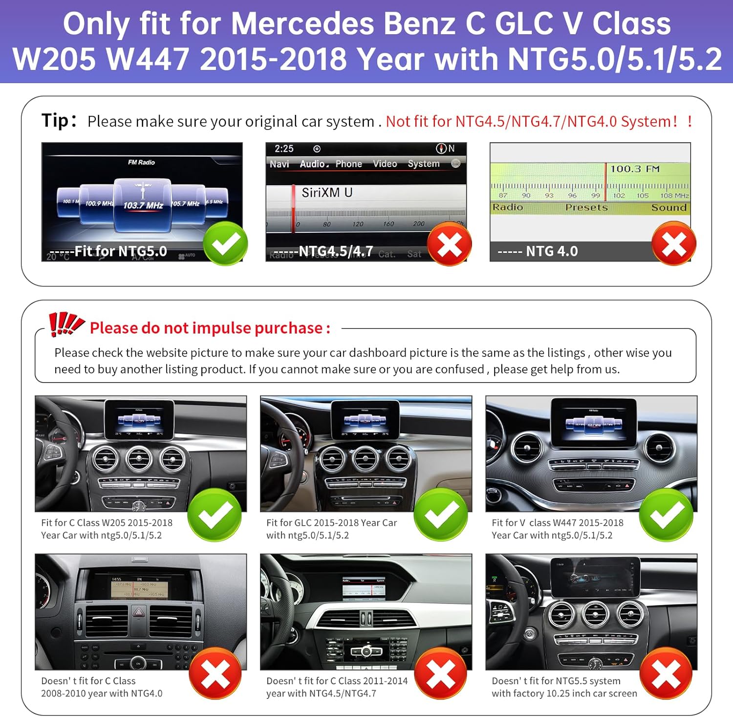 Perfect Fit for Mercedes-Benz Models (W205 CarPlay Upgrade):Designed for Mercedes-Benz C-Class W205, GLC, and V-Class W447 (2015–2018) with NTG 5.0 / 5.1 / 5.2 system. This CarPlay screen upgrade is compatible with C180, C200, C300, C43 AMG, GLC300 and more. Please confirm your system version before purchase.