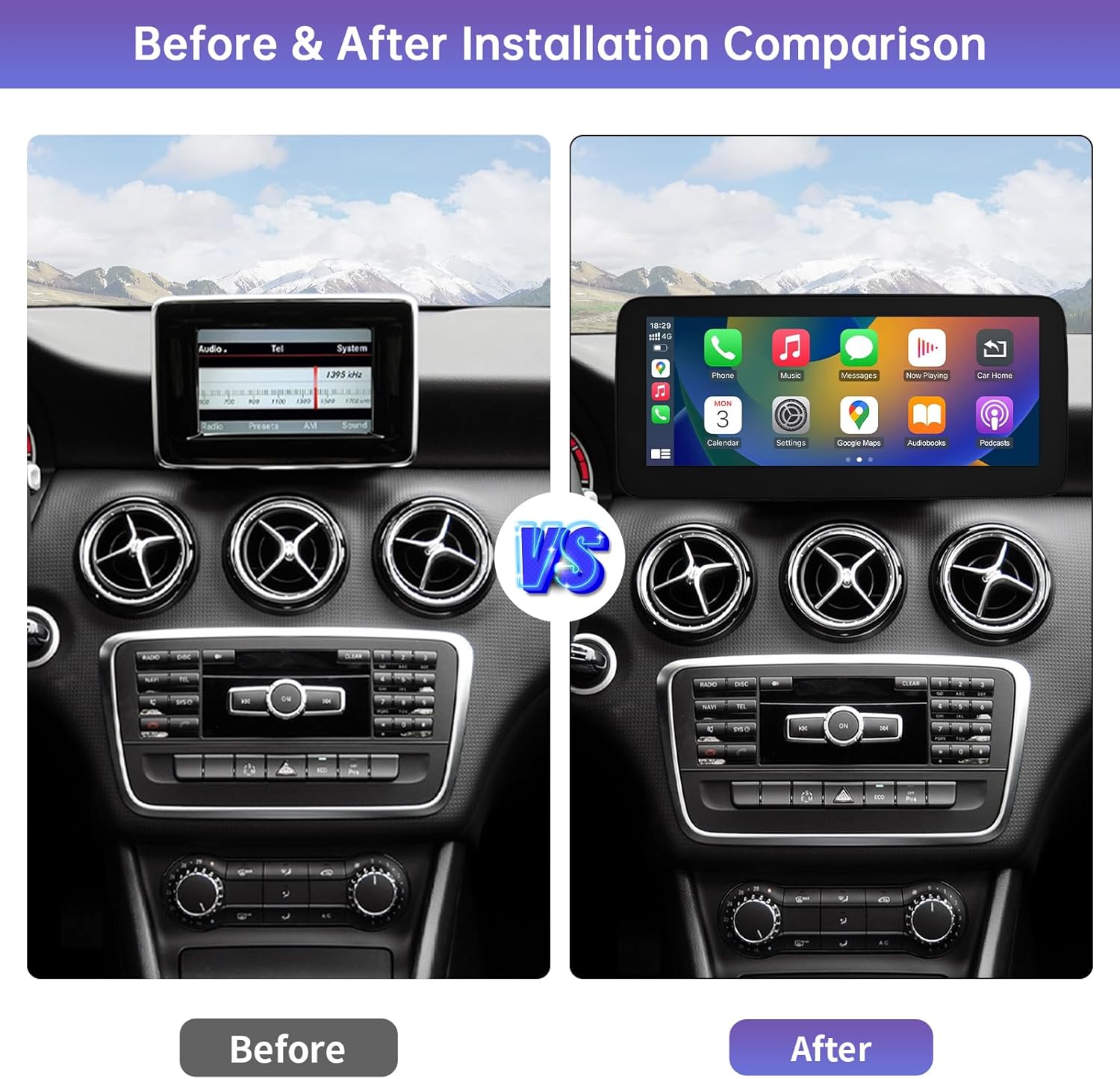 Installing was SUCH a pain but car looks great now. Works perfectly and has all the CarPlay features newer cars have. Installed on a 2014 Mercedes CLA250.