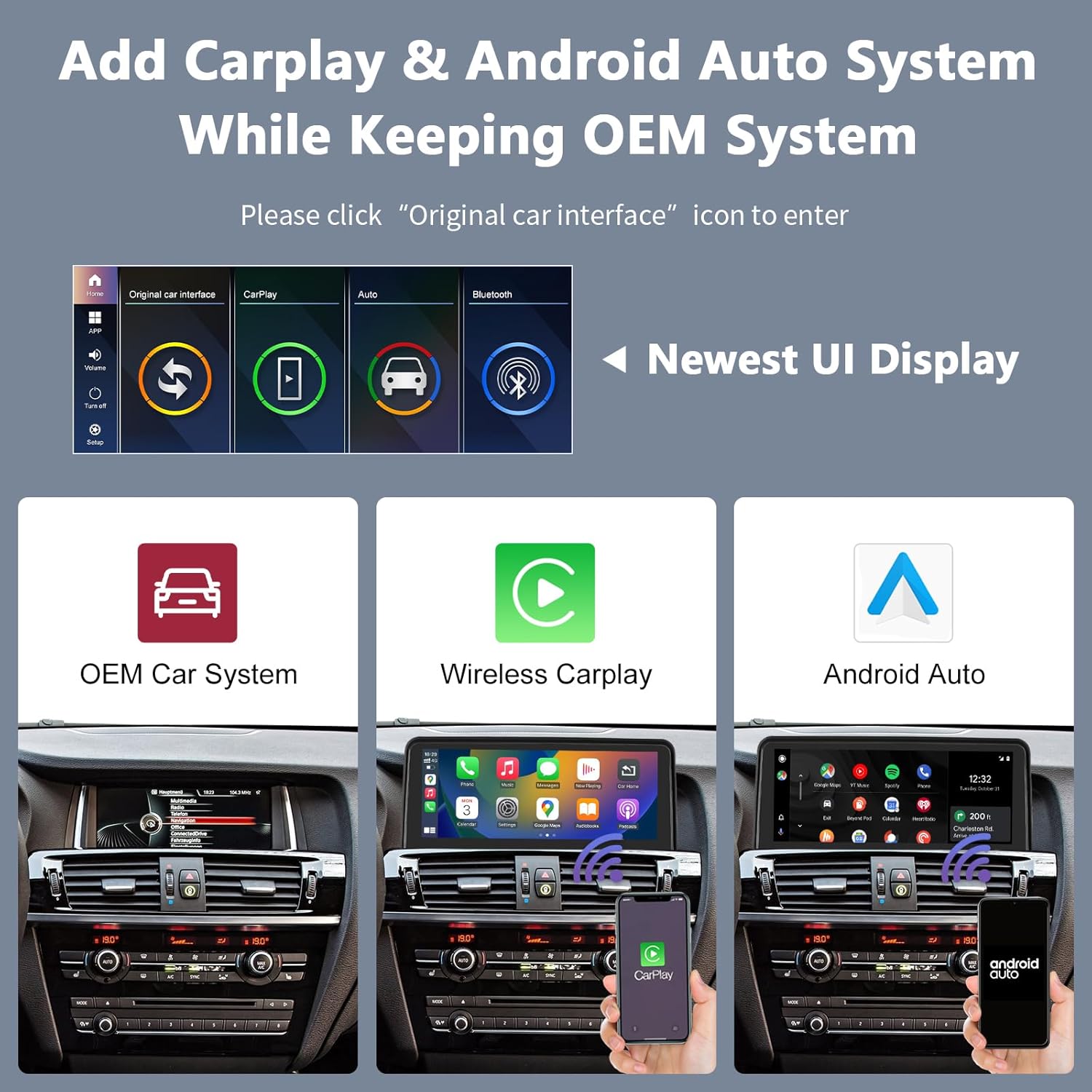 2.Wireless CarPlay & Android Auto Integration: Upgrade your car factory screen to a modern CarPlay Android Auto display system with full smartphone connectivity.Supports:Wireless CarPlay, Wireless Android Auto, Wireless MirrorLink for iOS & Android, Navigation (for Google Maps / for Waze / for Apple Maps), Music, calls, messages, apps, Voice control via Siri & for Google Assistant.