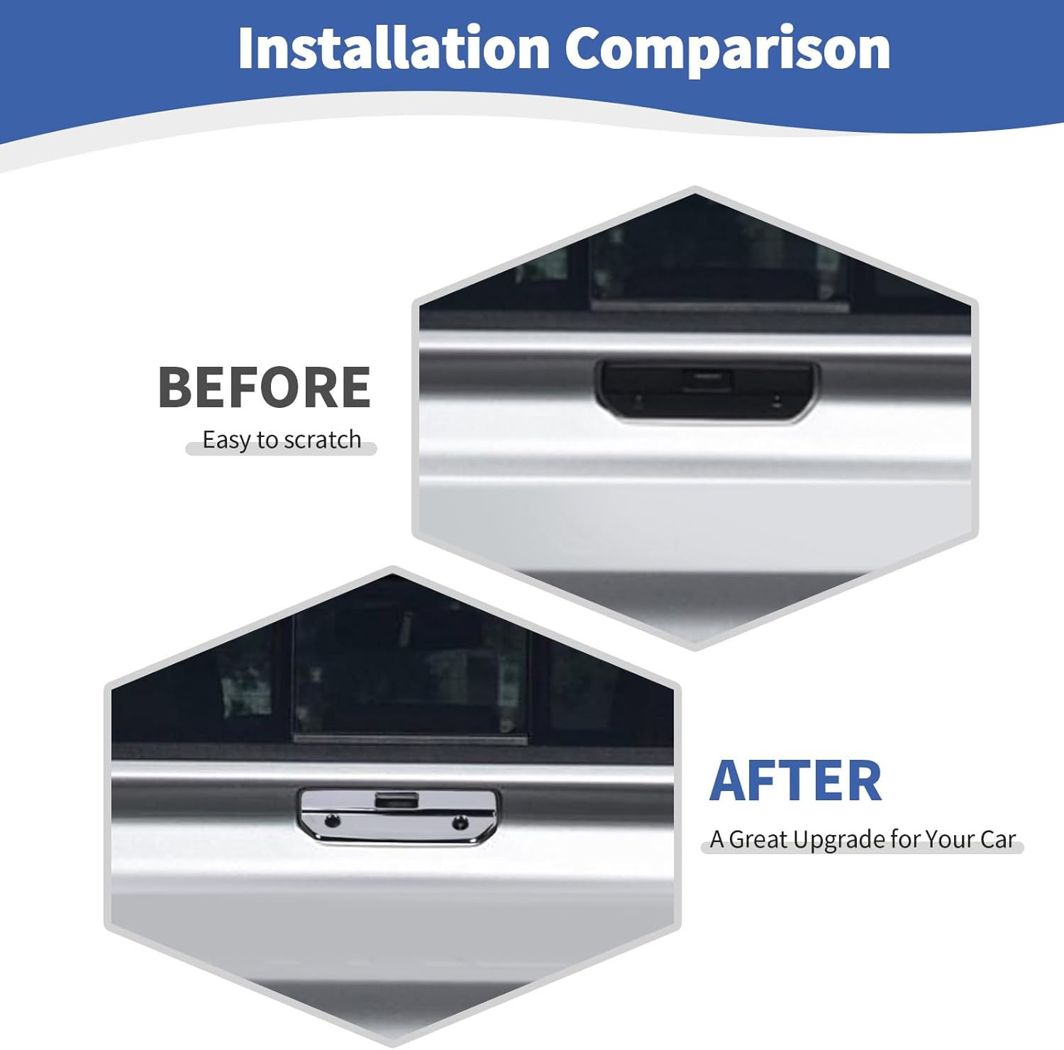【COMPATIBILITY】Chrome Exterior Accessories Compatible with Chevy Silverado GMC Sierra 2019 2020 2021 2022 2023 2024 2025 Up. [Some models have different types of tailgate handle. Please confirm that the appearance of the tailgate handle is consistent with the picture, otherwise the tailgate handle trim will not fit]