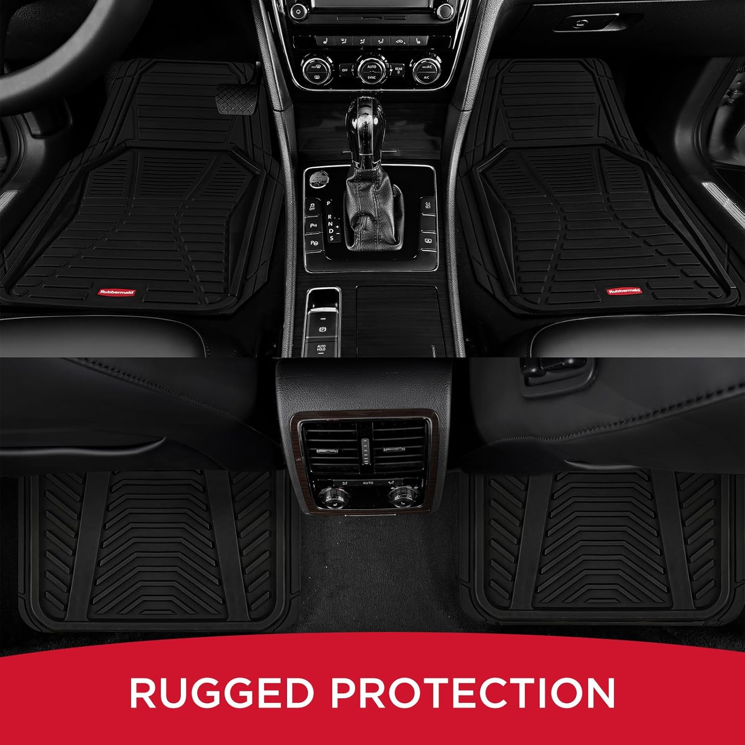 Customizable Universal Fit:Rubbermaid floor mats are engineered for versatility with trim lines that let you easily customize each piece to match the exact contours of your vehicle’s floor using only household scissors. Designed for cars, SUVs, pickup trucks, and vans, this 4-piece full set includes 2 front mats (27″ x 19″) and 2 rear mats (17″ x 14″) to ensure comprehensive interior protection with a tailored fit.